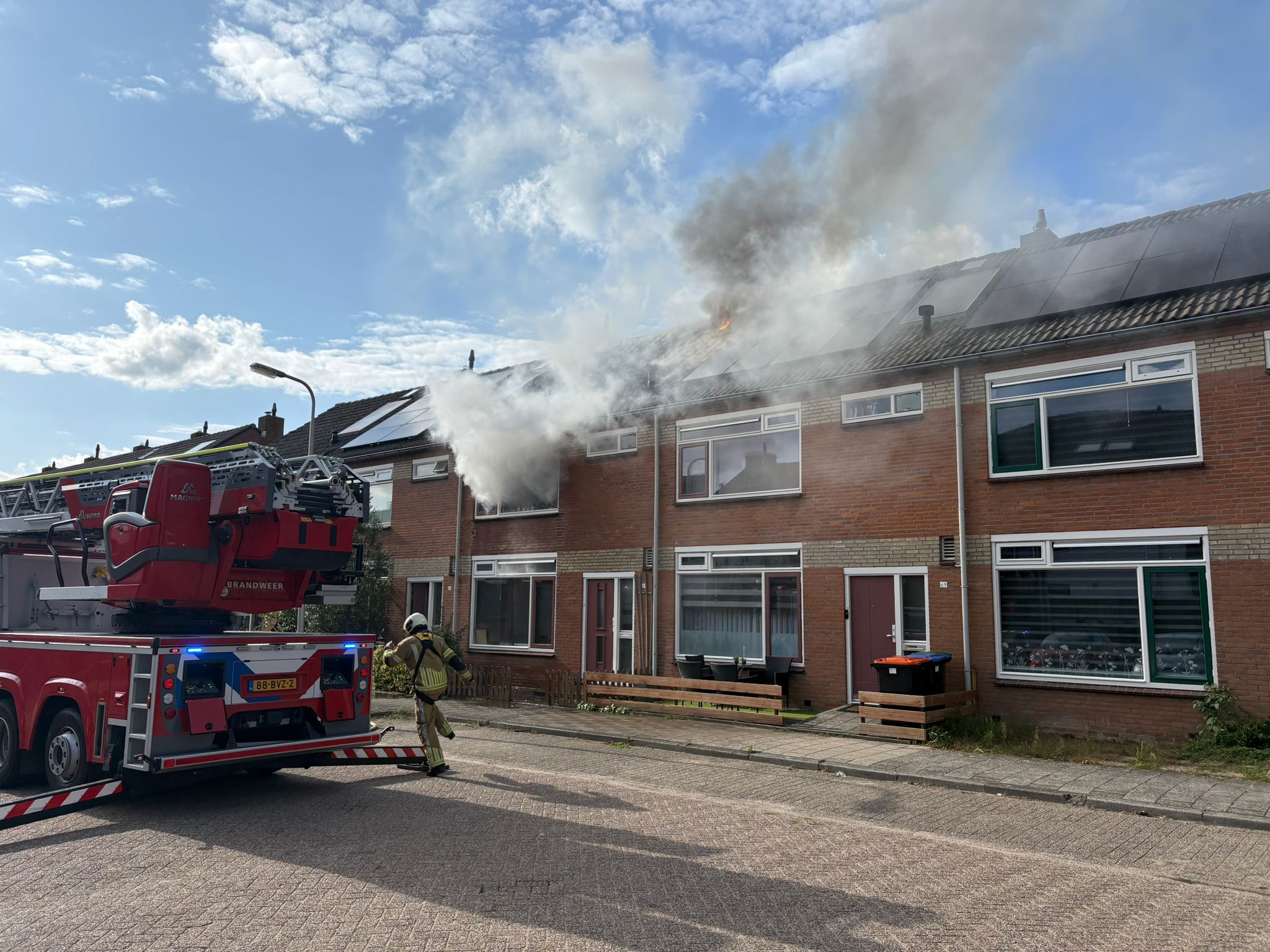 De brand zou mogelijk zijn begonnen bij het dak van een woning en sloeg vervolgens over naar een naastgelegen huis. Meerdere hulpdiensten, waaronder brandweer, politie, een officier van dienst geneeskundig (OVD-G) en ambulancepersoneel kwamen met spoed ter plaatse. De brandweer zette meerdere eenheden in om de brand onder controle te krijgen en uitbreiding te voorkomen.