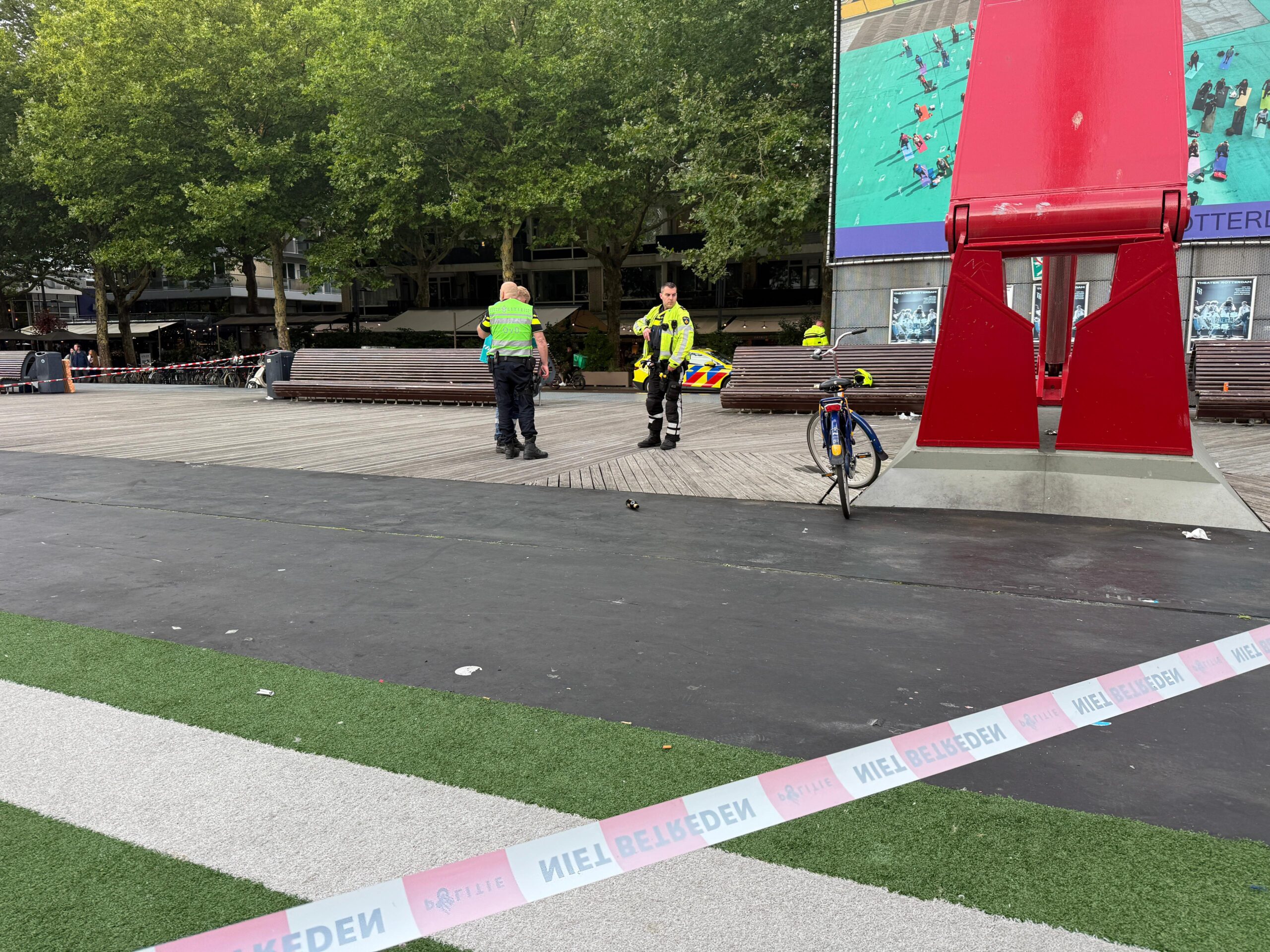 De omgeving rond het Schouwburgplein is afgezet voor sporenonderzoek. De aanleiding voor de ruzie wordt nog onderzocht.