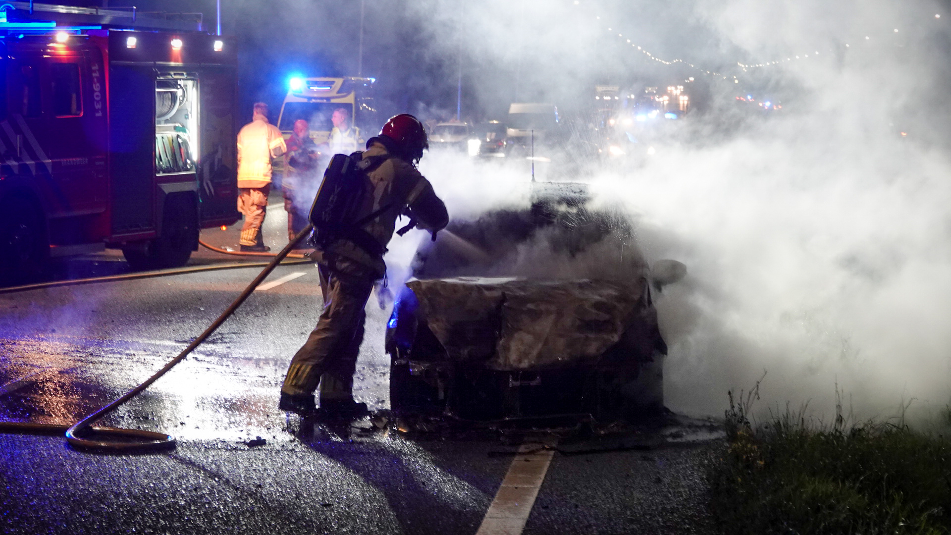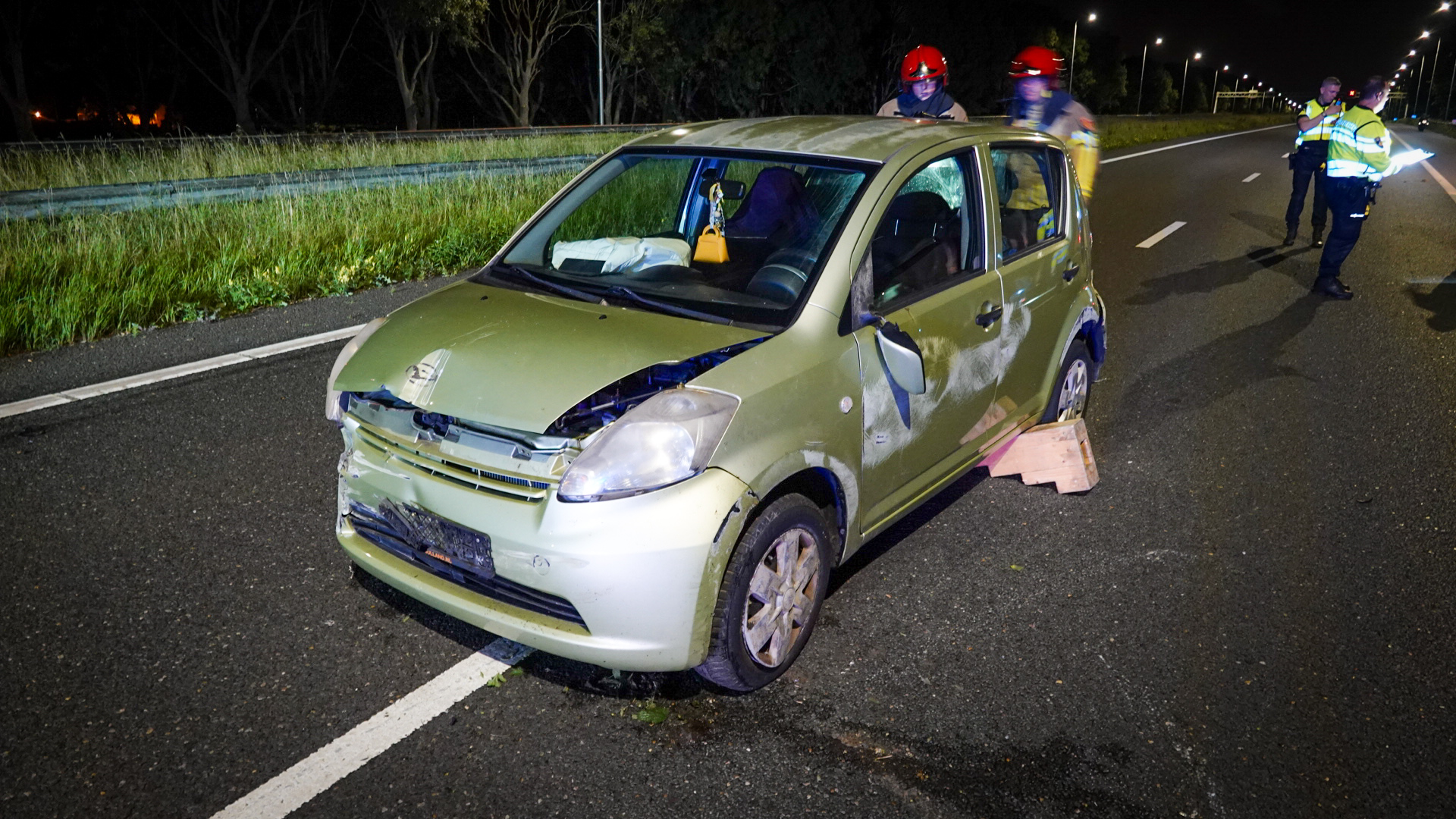 De brandweer bluste de brandende auto, die volledig uitbrandde. De A7 is vanaf Avenhorn volledig afgesloten voor verkeer. De politie onderzoekt de toedracht en Rijkswaterstaat voert een spoedreparatie aan de vangrail uit.