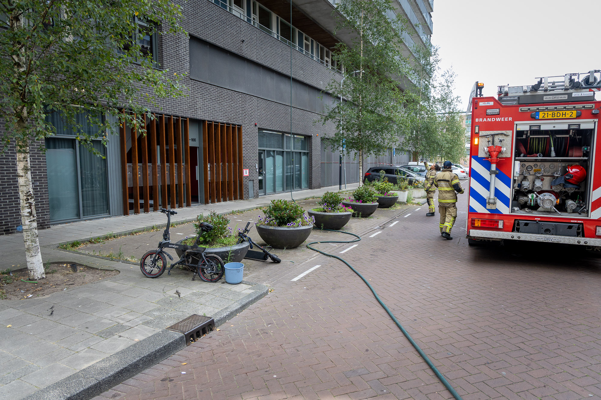 De brandweer was met meerdere eenheden snel ter plaatse en schaalde uit voorzorg op naar middelbrand. De brand kon vlot worden geblust. Zowel de elektrische fiets als een step zijn door de brandweer naar buiten gebracht om daar veilig te worden afgekoeld.