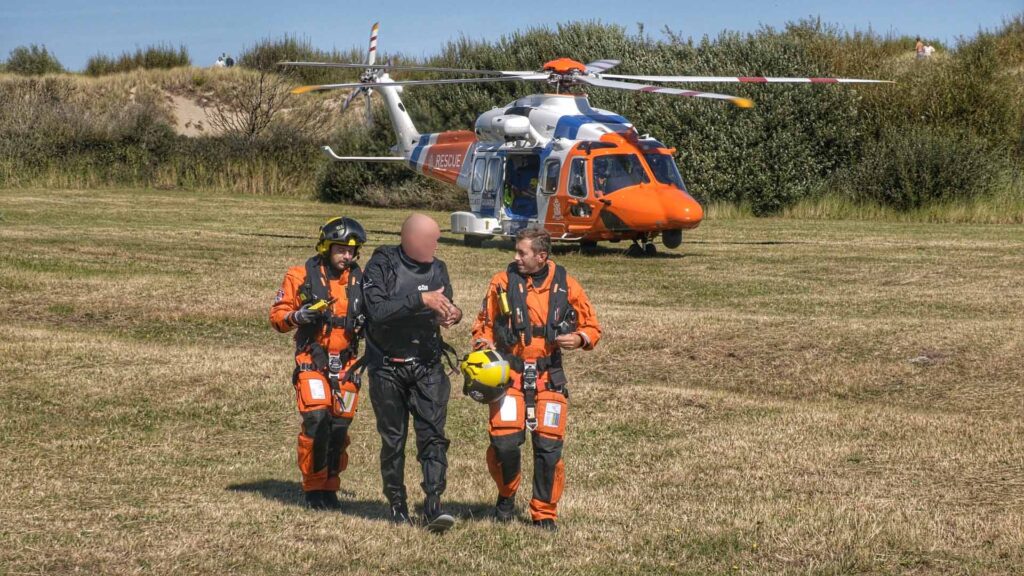 De helikopter wist het slachtoffer uit het water te halen en vloog vervolgens naar het reddingsstation van De Cocksdorp.