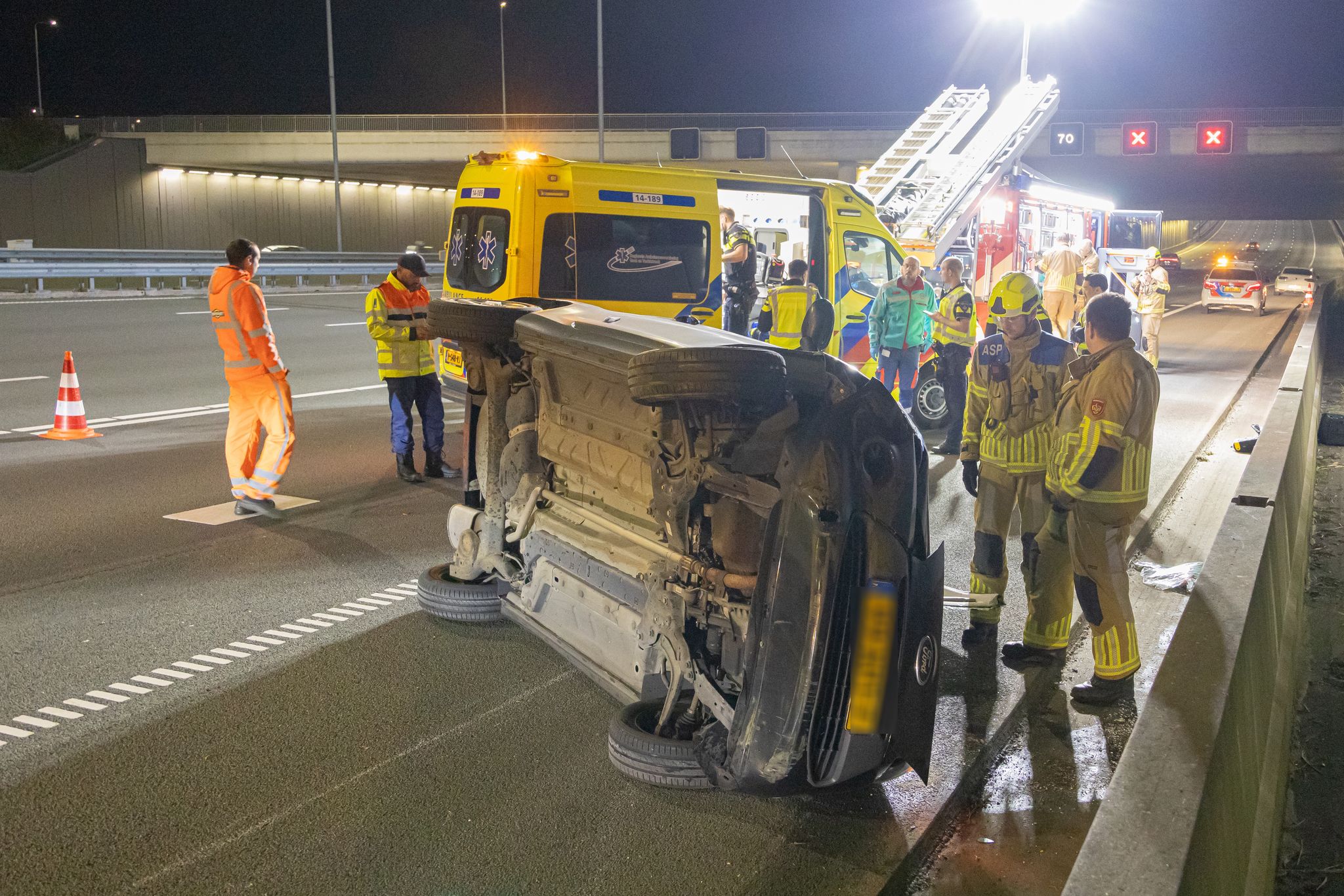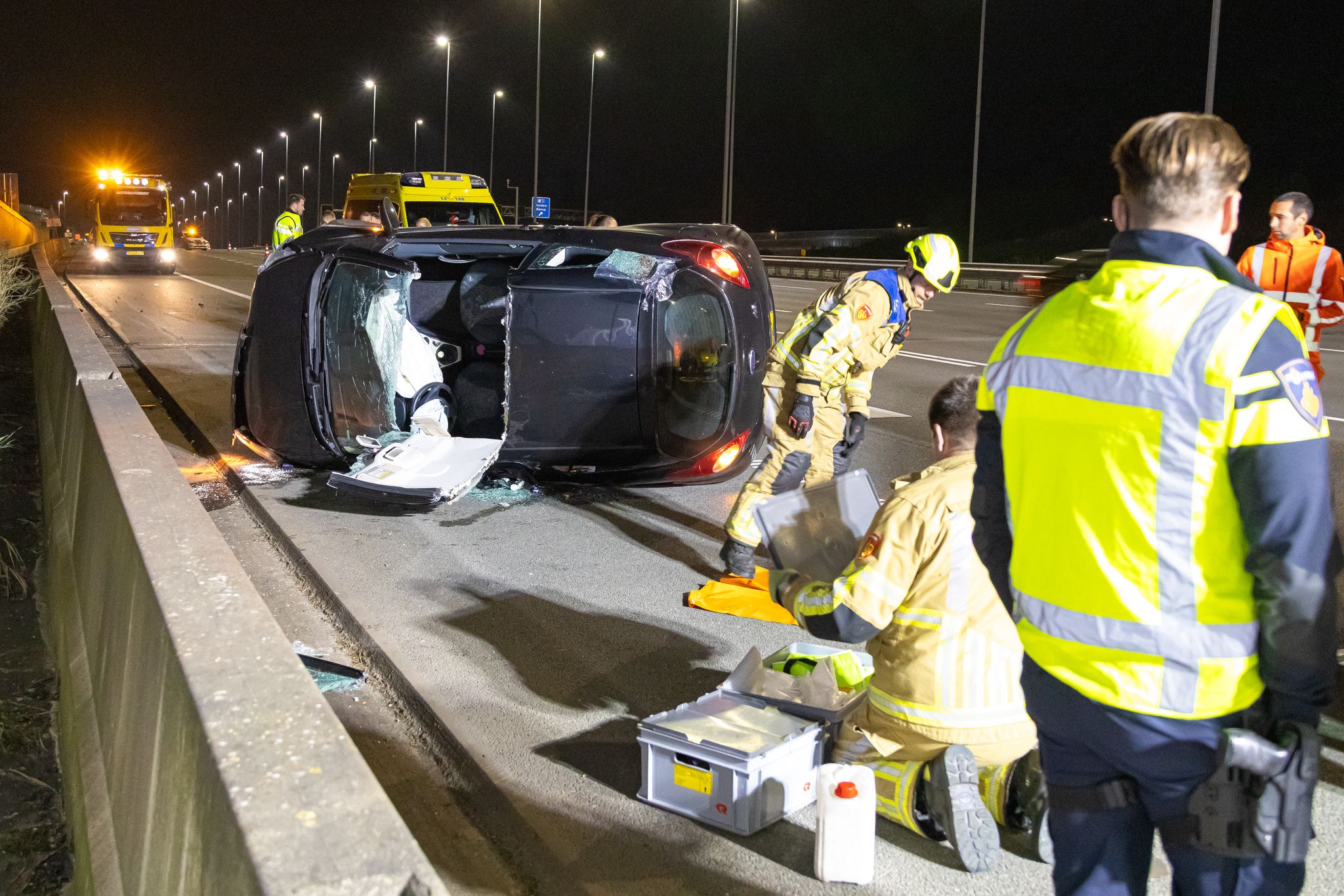 Voor de hulpverlening en berging werden twee van de vijf rijstroken tijdelijk afgesloten. De oorzaak van het ongeval wordt door de politie onderzocht.