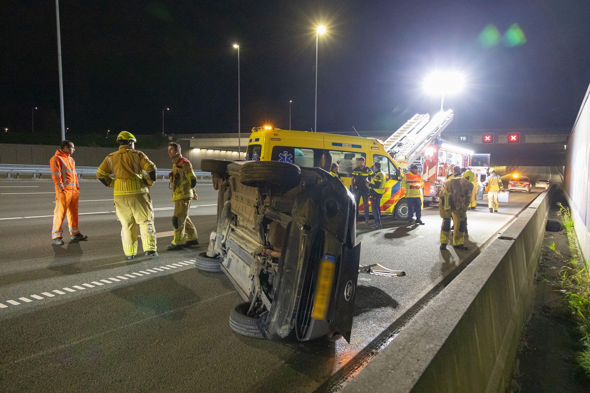 Een auto kwam op zijn kant terecht, waarbij de bestuurster vast kwam te zitten in het voertuig. De brandweer knipte het dak open om de vrouw te kunnen bevrijden. Zij is vervolgens met onbekend letsel naar het ziekenhuis gebracht.