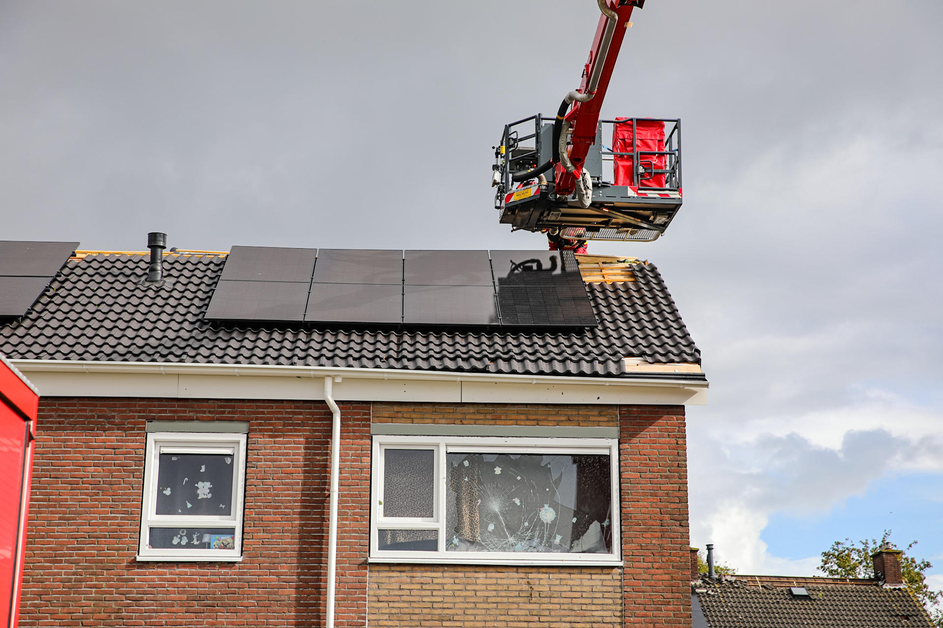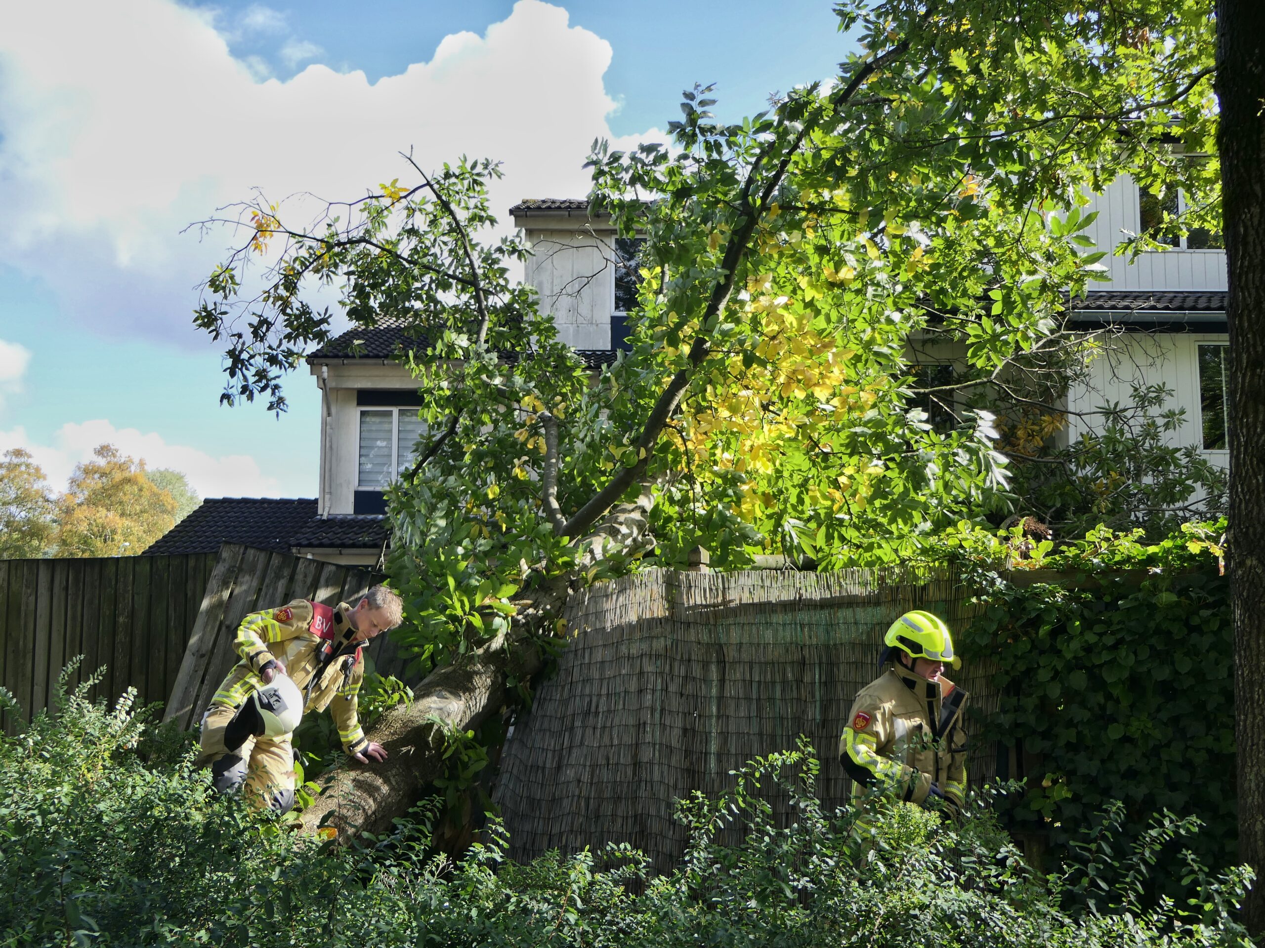 ^In Soesterberg was een boom op een woning gevallen. De bewoner was aanwezig, maar raakte niet gewond.