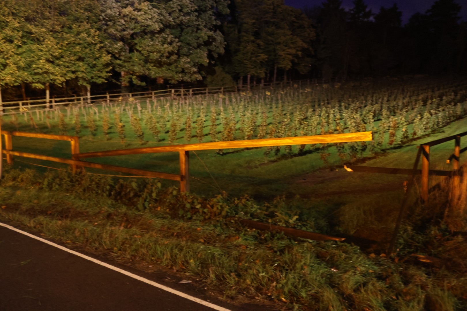 Een personenauto komende vanuit Elst raakte van de weg, reed over de andere weghelft en belandde in de berm. Daar botste het voertuig tegen een lantaarnpaal en een hekwerk, voordat het in de bossages tot stilstand kwam tegen een schuur. Getuigen zagen kort na het ongeval een man weglopen, vermoedelijk de bestuurder van de auto. Een opgeroepen ambulance is onderweg afgemeld, en ter plaatse zijn verklaringen van omstanders opgenomen.