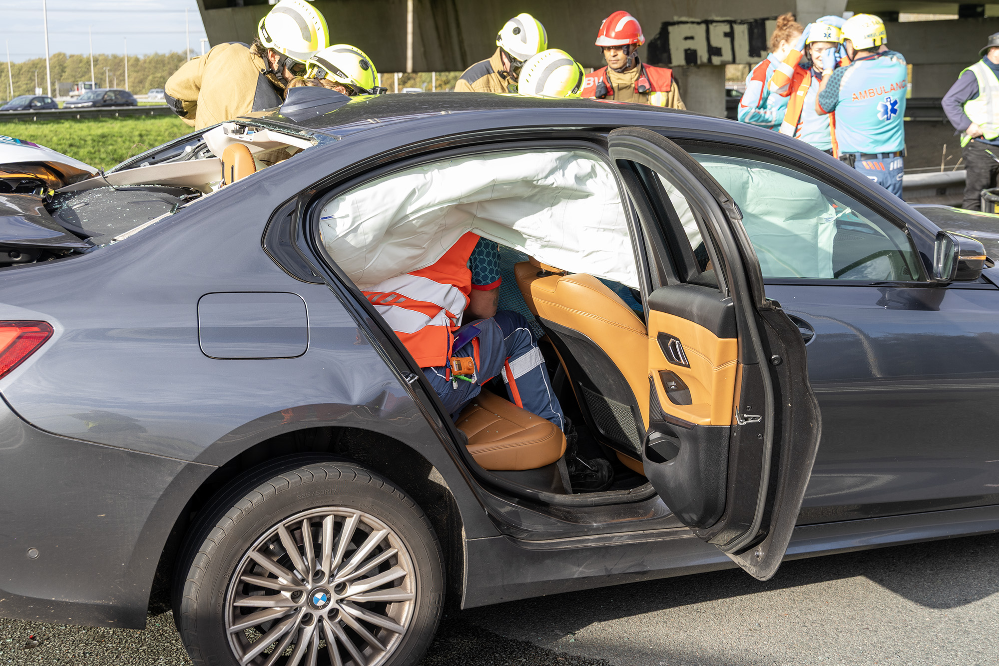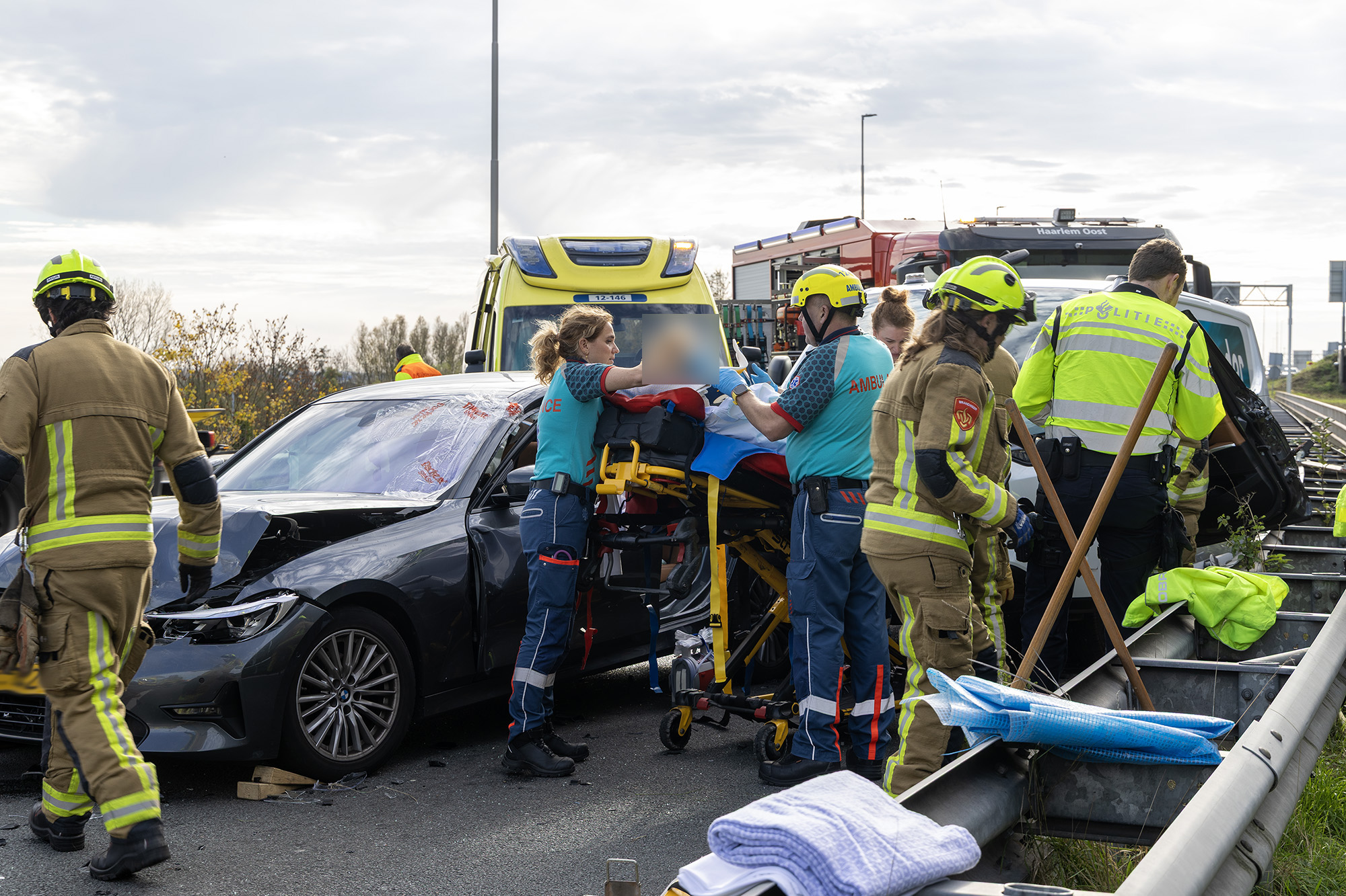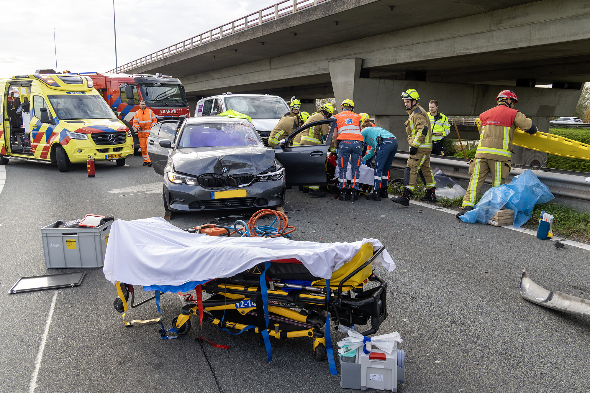 Even na half acht ging het mis op de afrit. Eén van de inzittenden raakte bekneld in zijn voertuig en moest door de brandweer worden bevrijd. Hiervoor werd de deur van de auto weggeknipt. Het slachtoffer is met spoed overgebracht naar het AMC. Een tweede gewonde werd met een andere ambulance naar het ziekenhuis vervoerd.