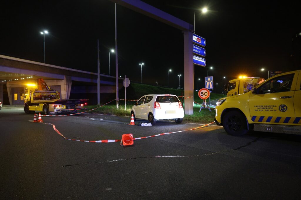 Hulpdiensten zetten een deel van de weg op het knooppunt af. Meerdere ambulances, een brandweerwagen en politiewagens kwamen ter plaatse, en ook een helikopter werd ingezet bij de zoekactie. Een voertuig is door een bergingsbedrijf meegenomen. De politie roept getuigen op zich te melden via 0900-8844.