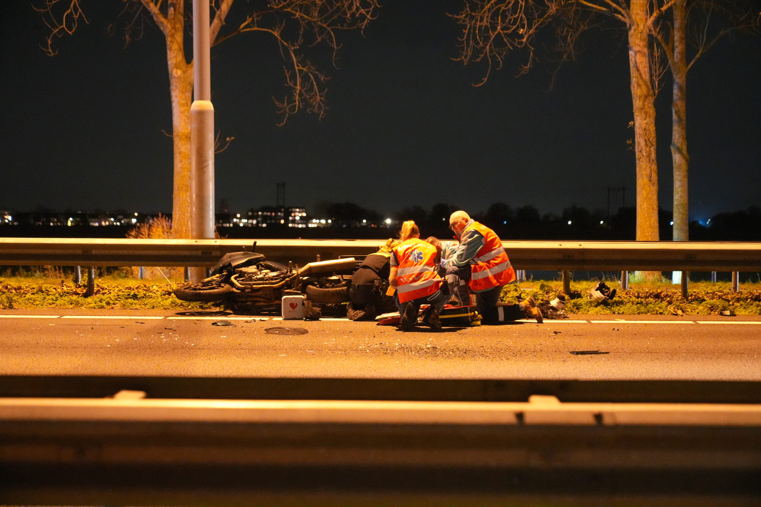 MOORDRECHT – Donderdagavond is een motorrijder zwaargewond geraakt bij een ernstig ongeval op de Rijksweg A20 ter hoogte van hectometerpaal 44,4 in Moordrecht.