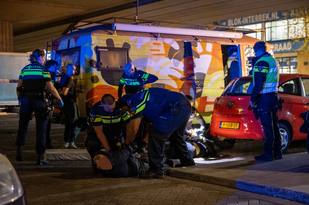 Op een parkeerplaats onder de snelweg A20 hebben agenten met grof geweld een oud camperbusje opengebroken. Uit het voertuig kwamen drie mannen tevoorschijn die Pools spraken. Zij zijn direct aangehouden.
