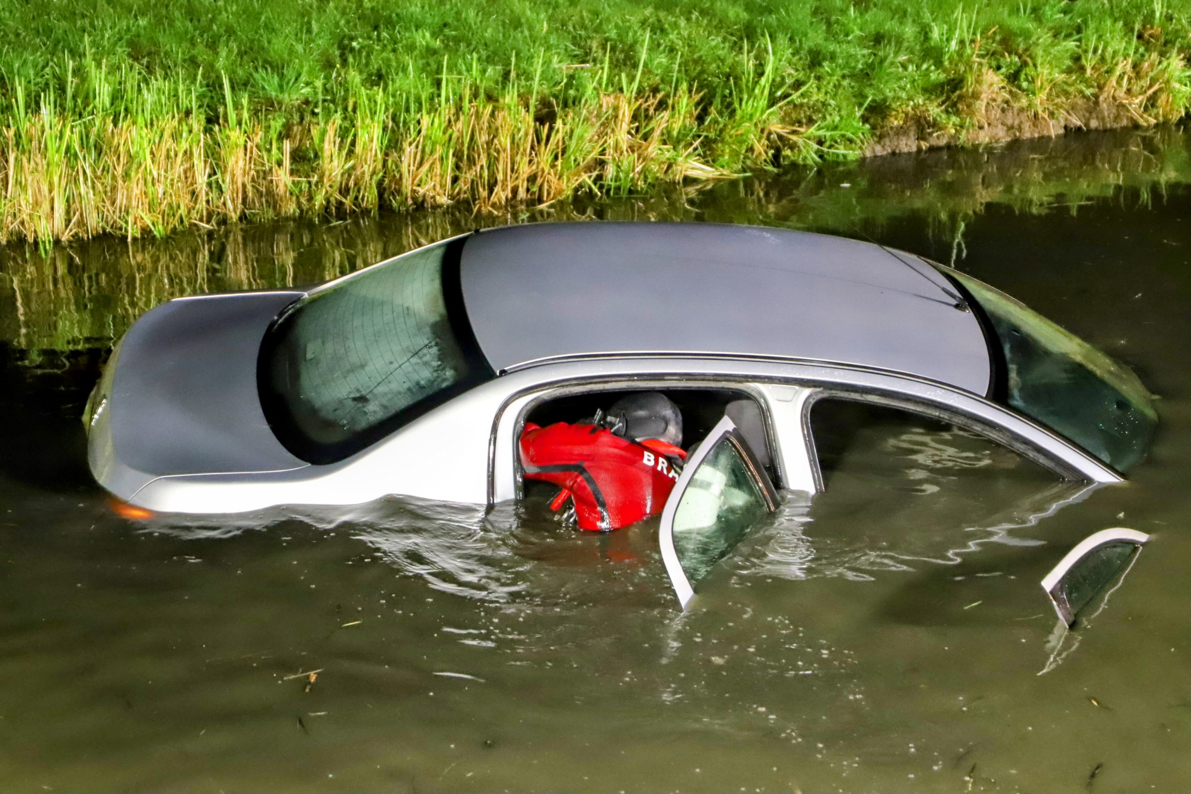 Auto te water, brandweer zoekt naar slachtoffers