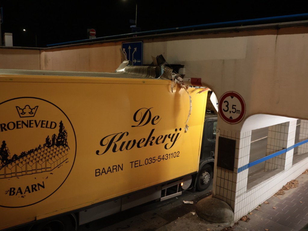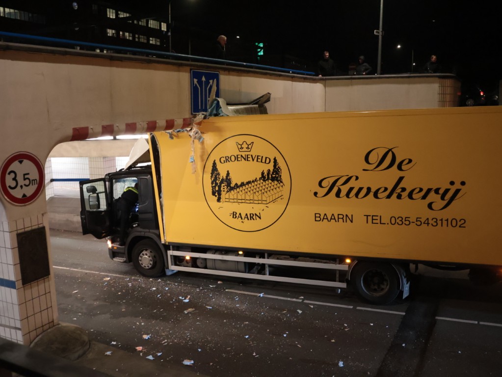 HILVERSUM – Op zondagavond rond 21.45 uur is een vrachtwagen vast komen te zitten onder de Beatrix-tunnel aan de Professor Kochstraat in Hilversum.