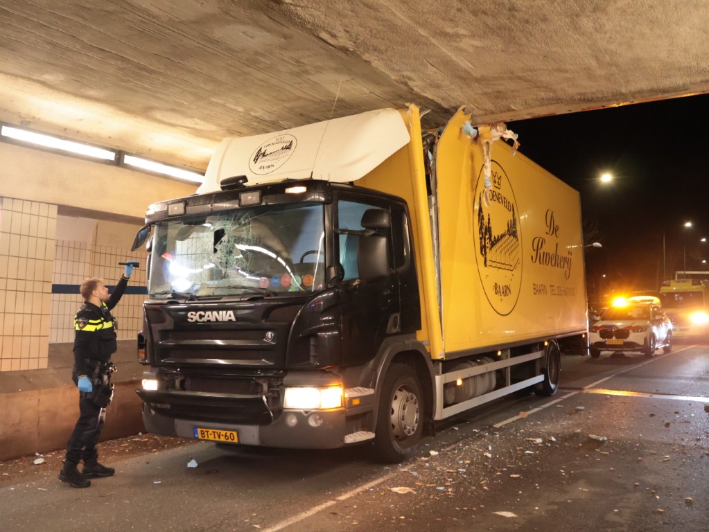 De vrachtwagen bleek te hoog voor de tunnel en kwam klem te zitten, waarbij de bestuurder gewond raakte. Het slachtoffer is ter plekke behandeld en vervolgens per ambulance naar het ziekenhuis vervoerd.