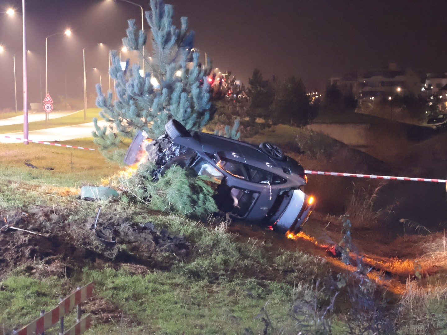 De hulpdiensten werden rond 01.50 uur opgeroepen. Het ongeval vond plaats op de kruising van de Poortdreef met de Olympialaan. De auto reed van een talud en kwam enkele meters lager tot stilstand. De brandweer moest de man uit het voertuig bevrijden.