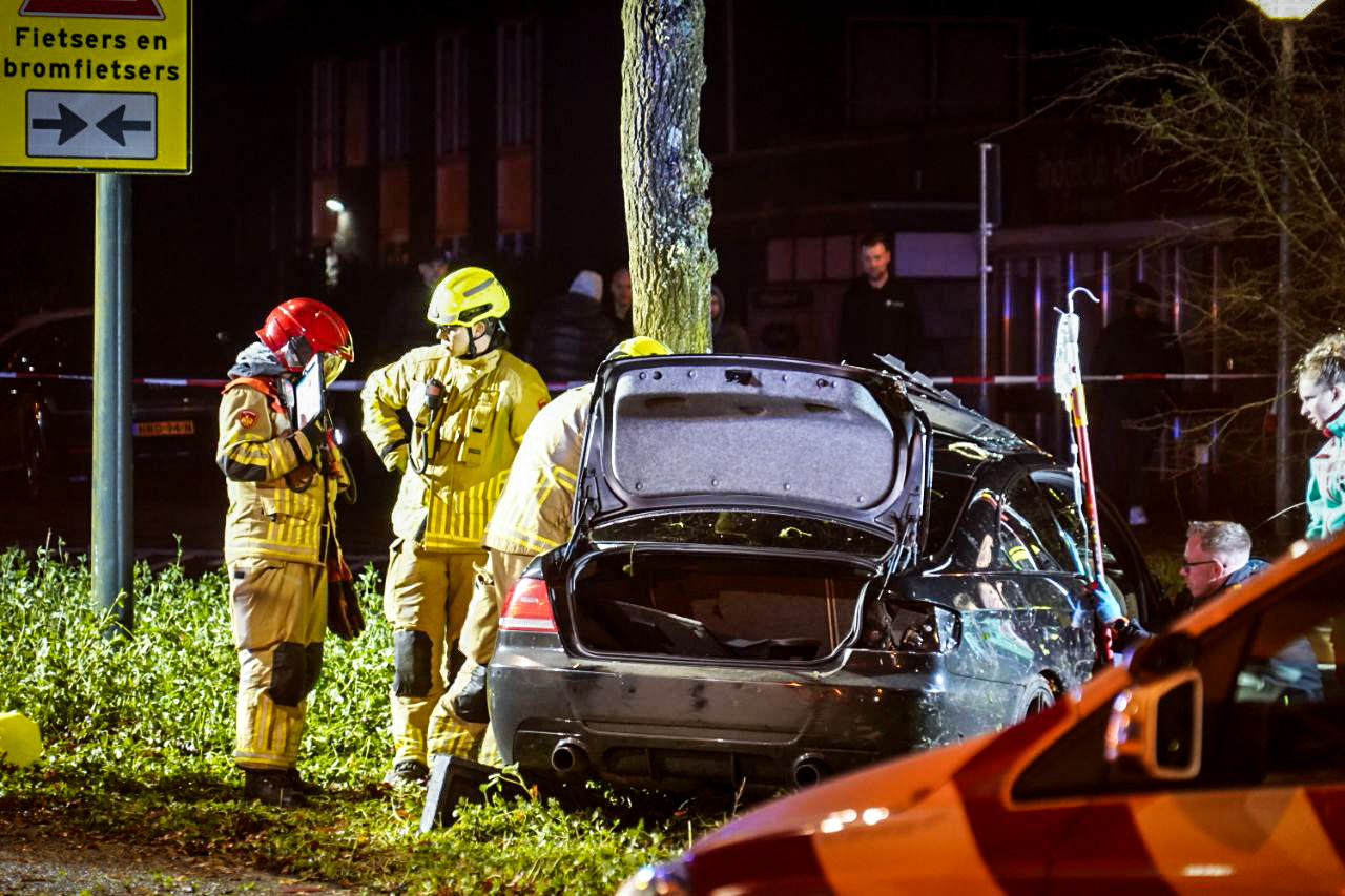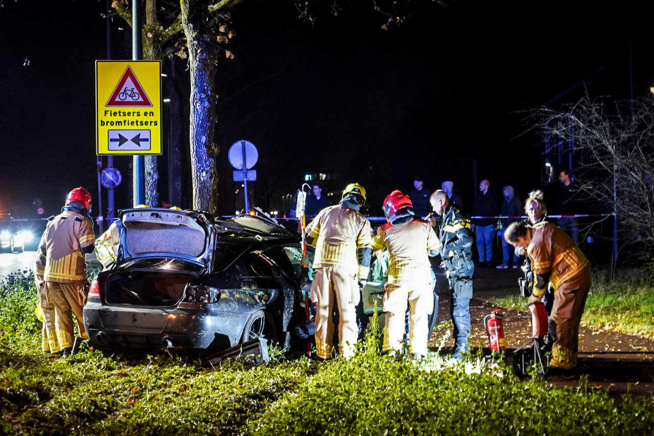 Het incident vond plaats rond 00.35 uur. De brandweer heeft de bestuurder uit de auto bevrijd. Een andere inzittende werd ter plaatse behandeld door ambulancepersoneel. Beide betrokkenen zijn met onbekend letsel overgebracht naar het ziekenhuis.