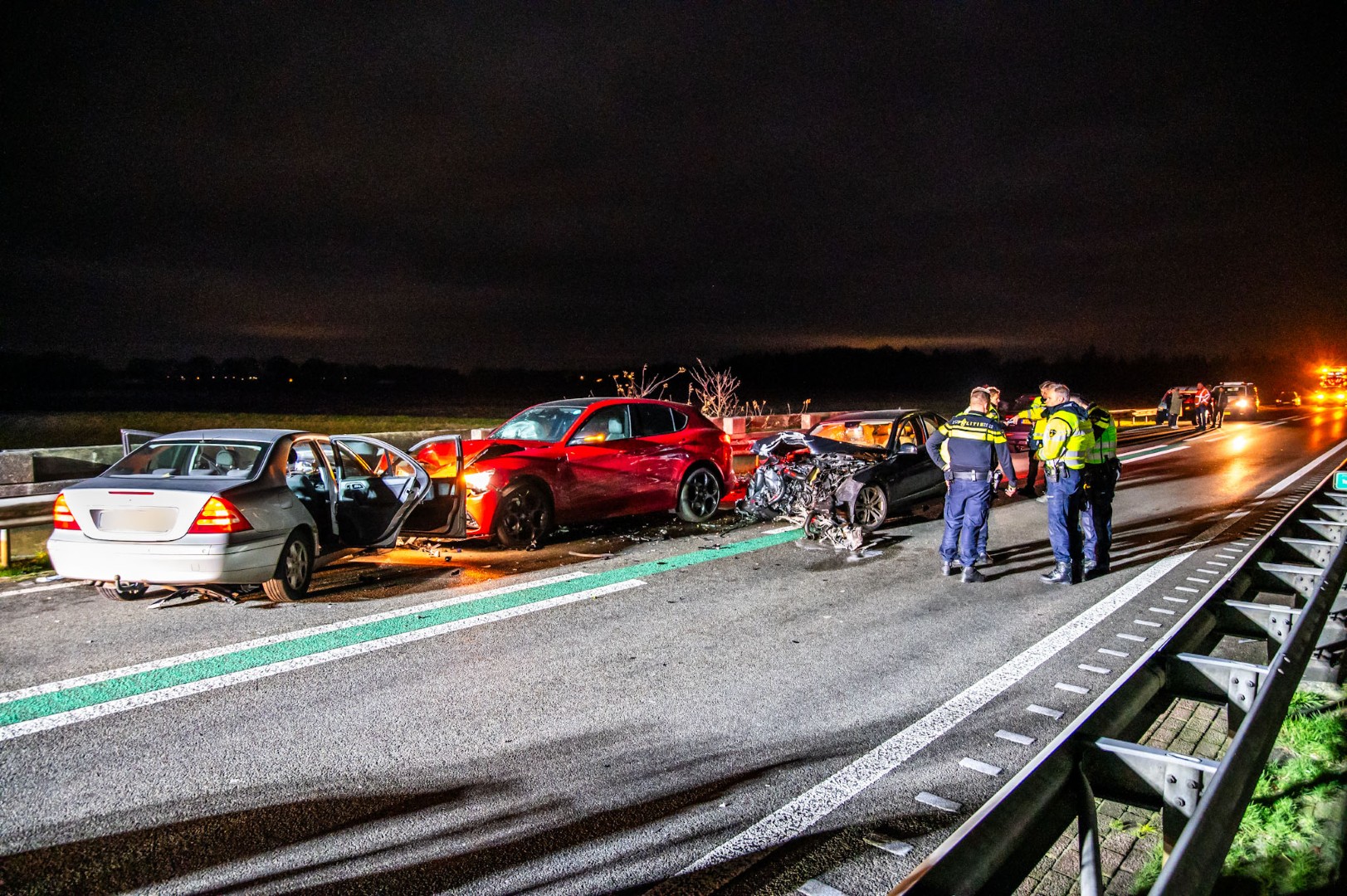 Twee zwaargewonden bij botsing met drie voertuigen op