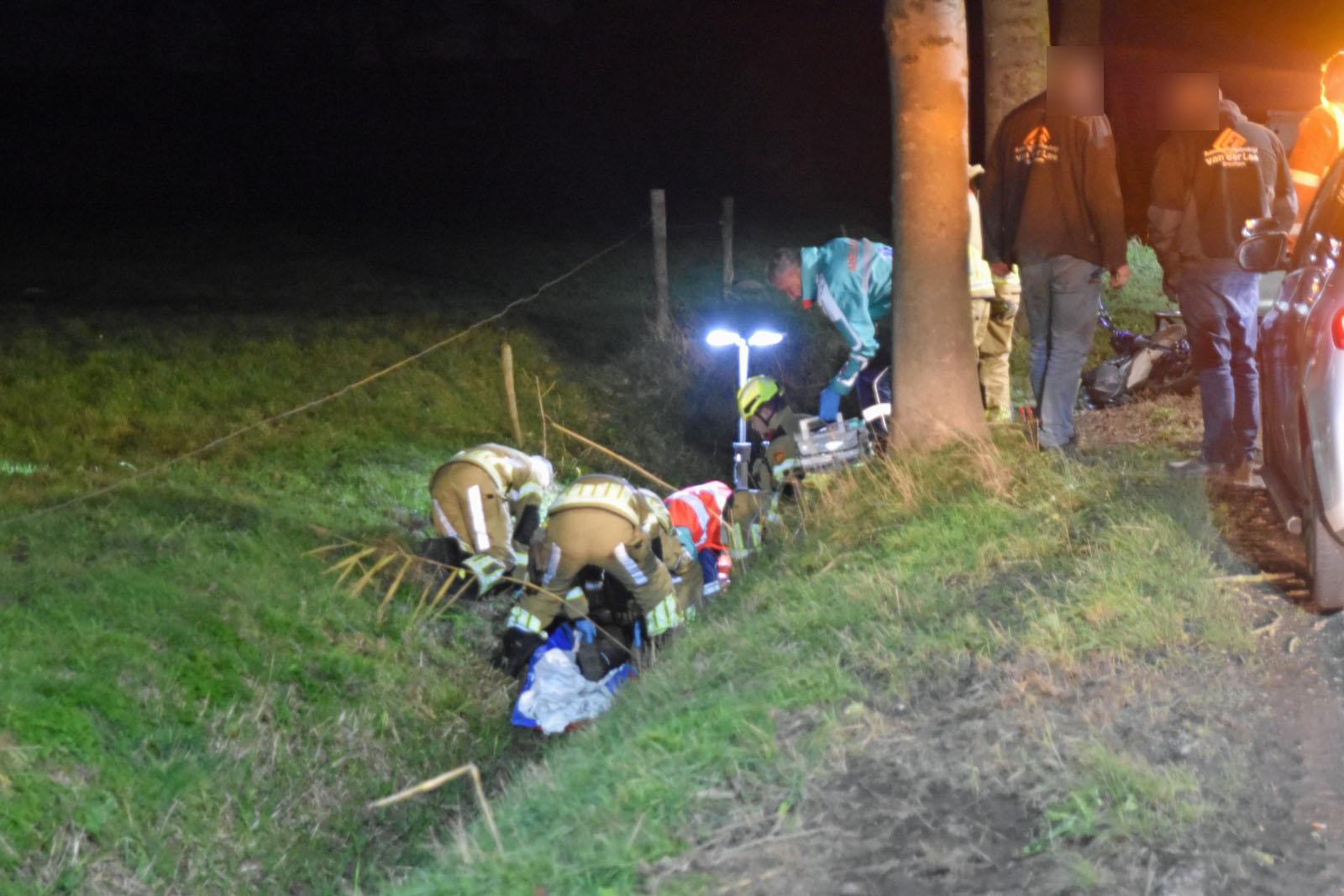 Het ongeluk gebeurde toen de bromfietser na de botsing in een naastgelegen sloot belandde. De brandweer moest de jongen uit het water halen. Hij is met spoed per ambulance naar het ziekenhuis overgebracht.