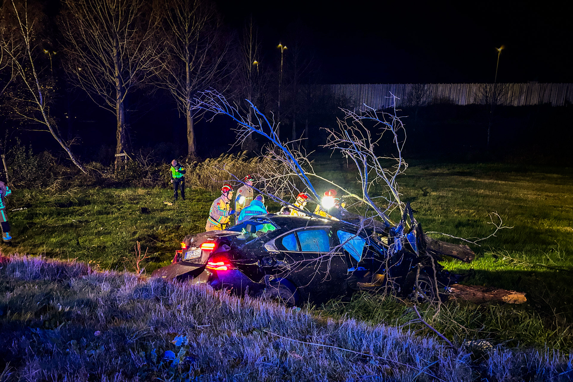 De boom brak door de klap af en werd tientallen meters met het voertuig meegesleurd. De auto kwam uiteindelijk tot stilstand onder aan de afrit. Meerdere hulpdiensten, waaronder politie, brandweer, ambulances en een traumahelikopter, kwamen met spoed ter plaatse.