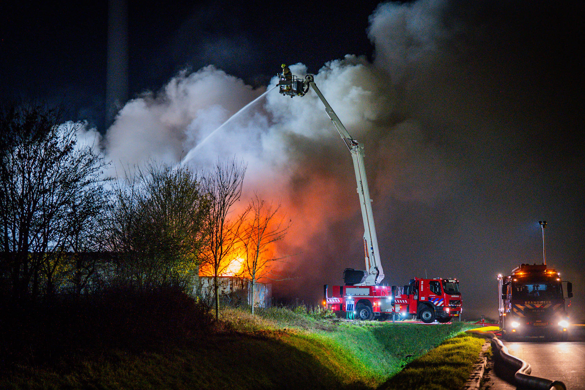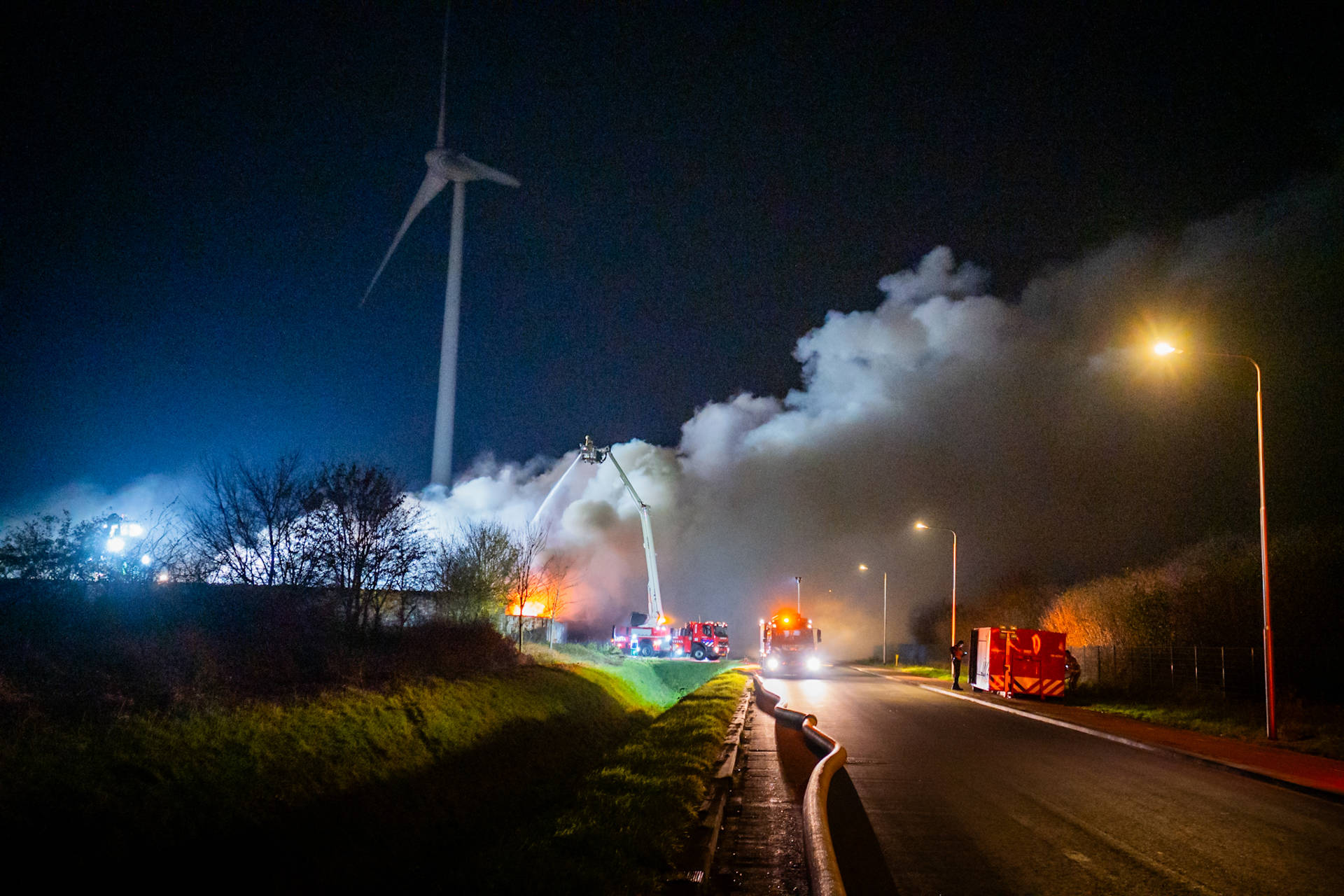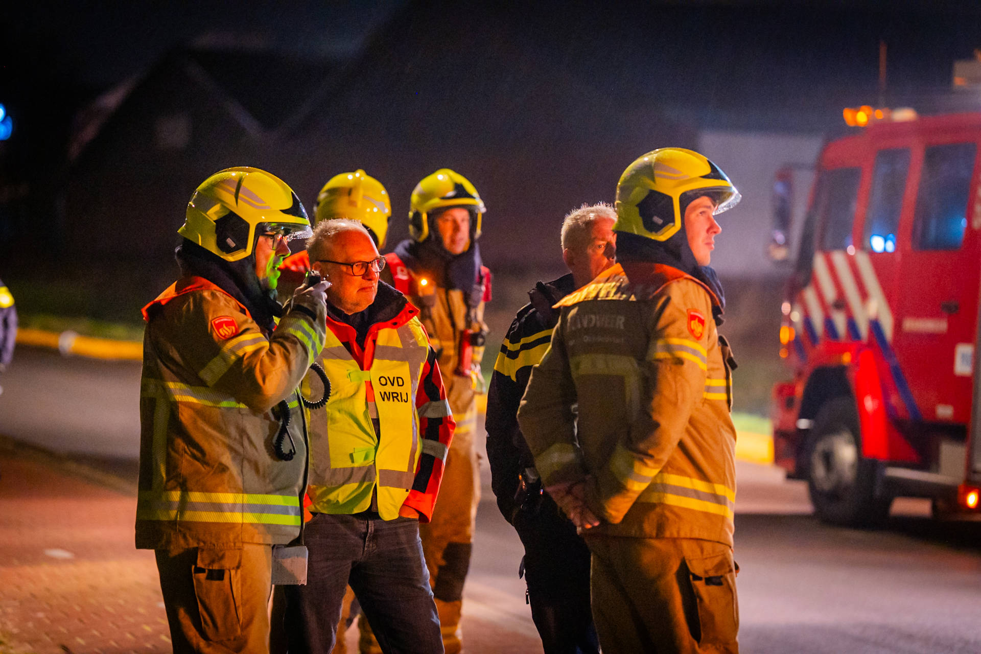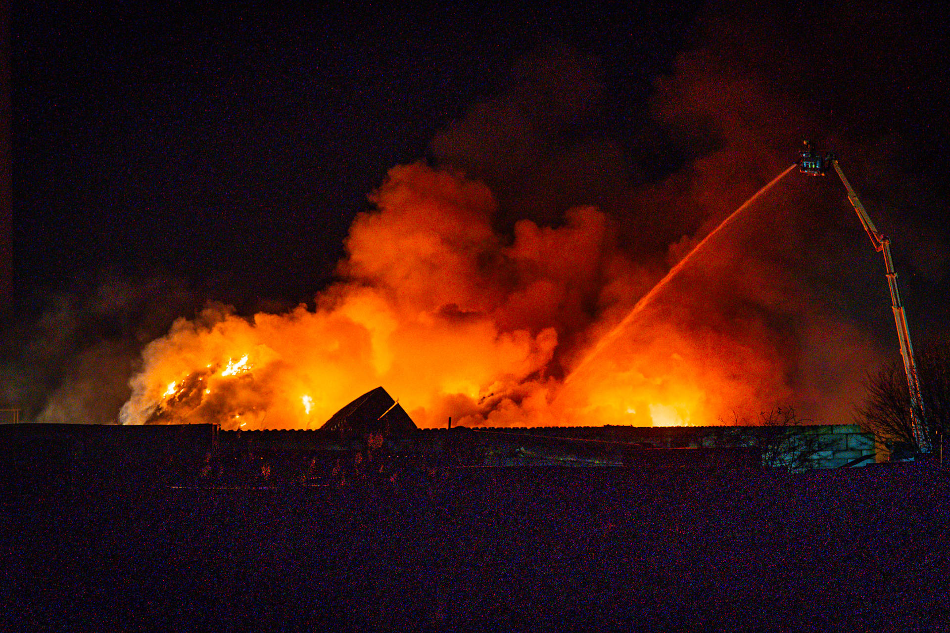 De brandweer schaalde kort na aankomst op, waarna een meerdere blusvoertuigen werden opgeroepen. Ook is een watertransportsysteem aangelegd om voldoende bluswater aan te voeren.