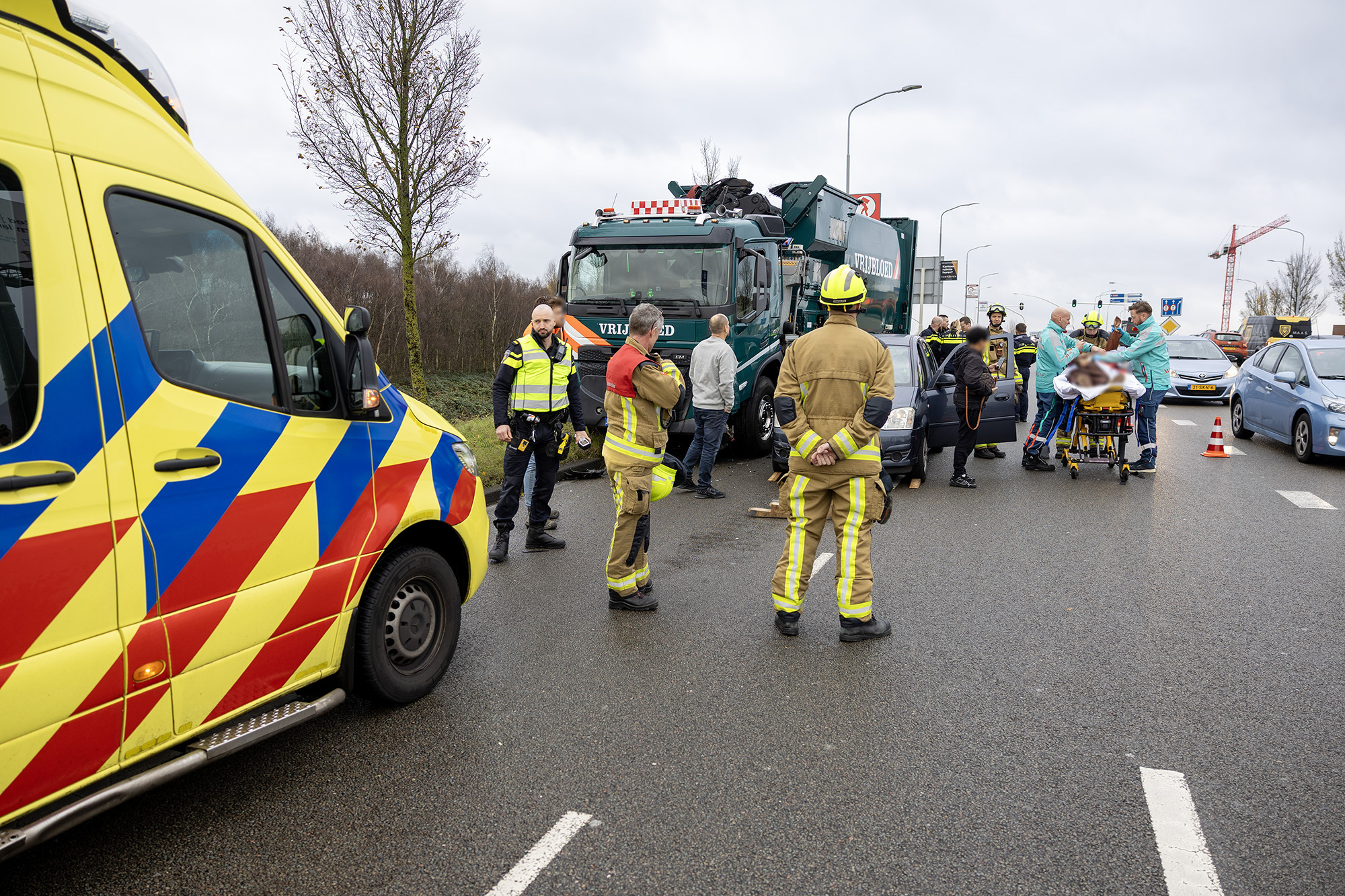 De bestuurster van de personenauto raakte bij de botsing gewond en is met onbekend letsel overgebracht naar het ziekenhuis.
