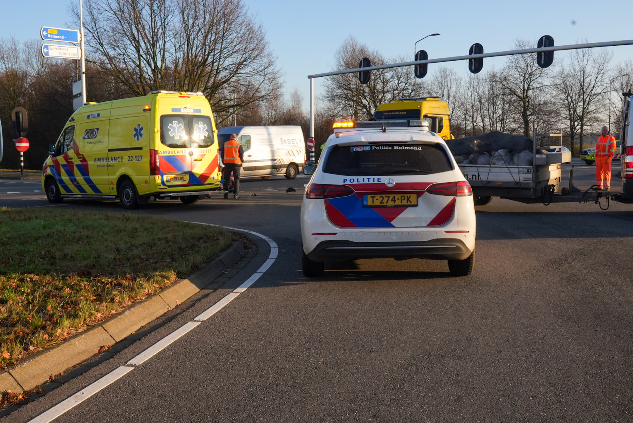 HELMOND – Op de Helmondsingel in Helmond zijn maandagochtend een motorrijdster en een busje met aanhanger betrokken geraakt bij een aanrijding. Het ongeval vond plaats op een kruising die geregeld wordt met verkeerslichten.