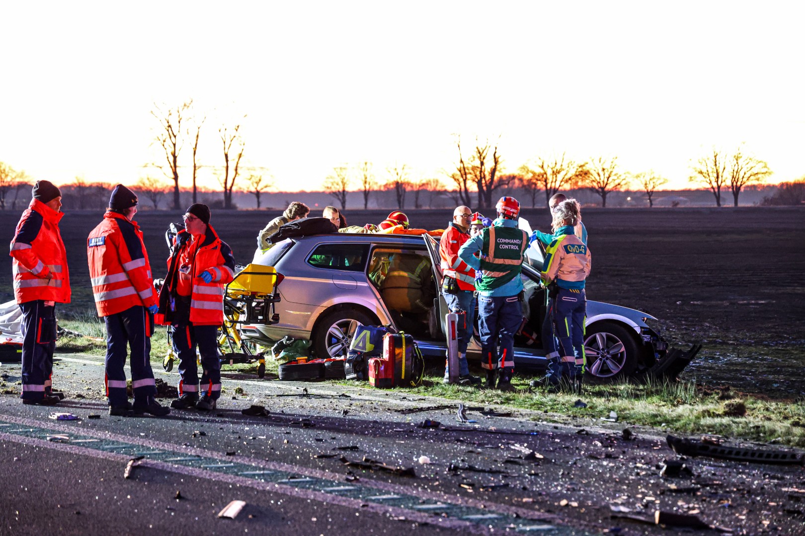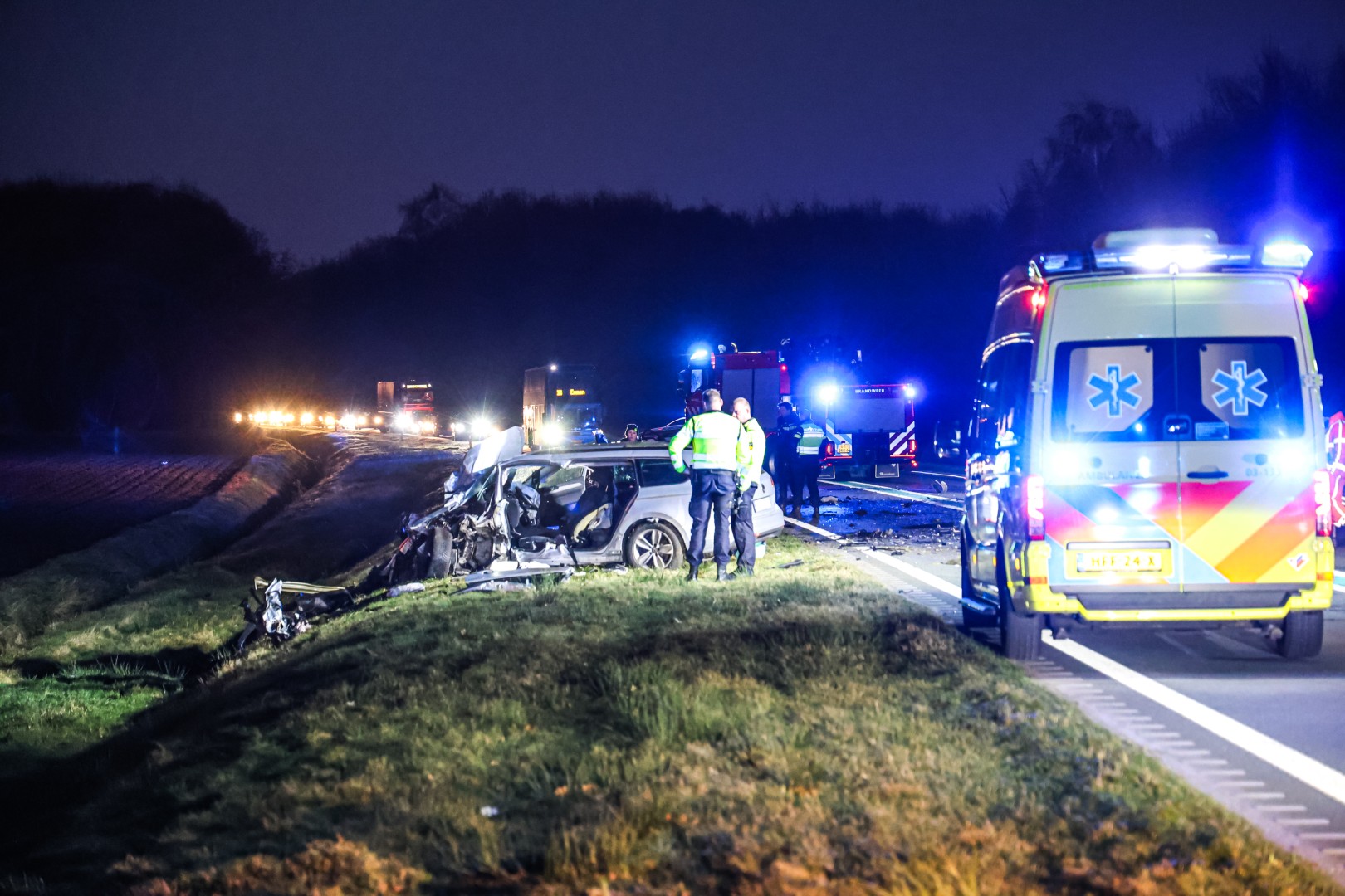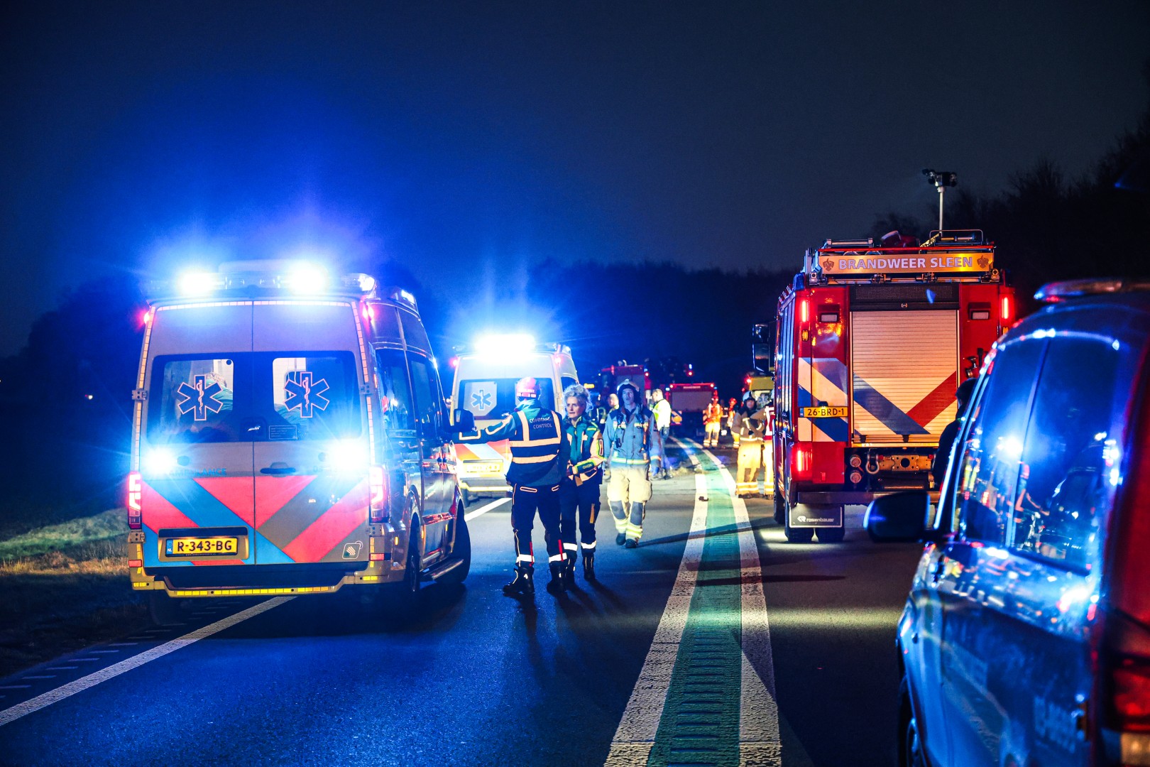 Het ongeval vond rond 16.30 uur plaats. Politie, brandweer, ambulance en een traumahelikopter werden met spoed opgeroepen. De brandweer schaalde op naar middel hulpverlening en kwam ter plaatse met twee blusvoertuigen en een hulpverleningsvoertuig. Twee auto’s kwamen na de botsing in de berm tot stilstand.
