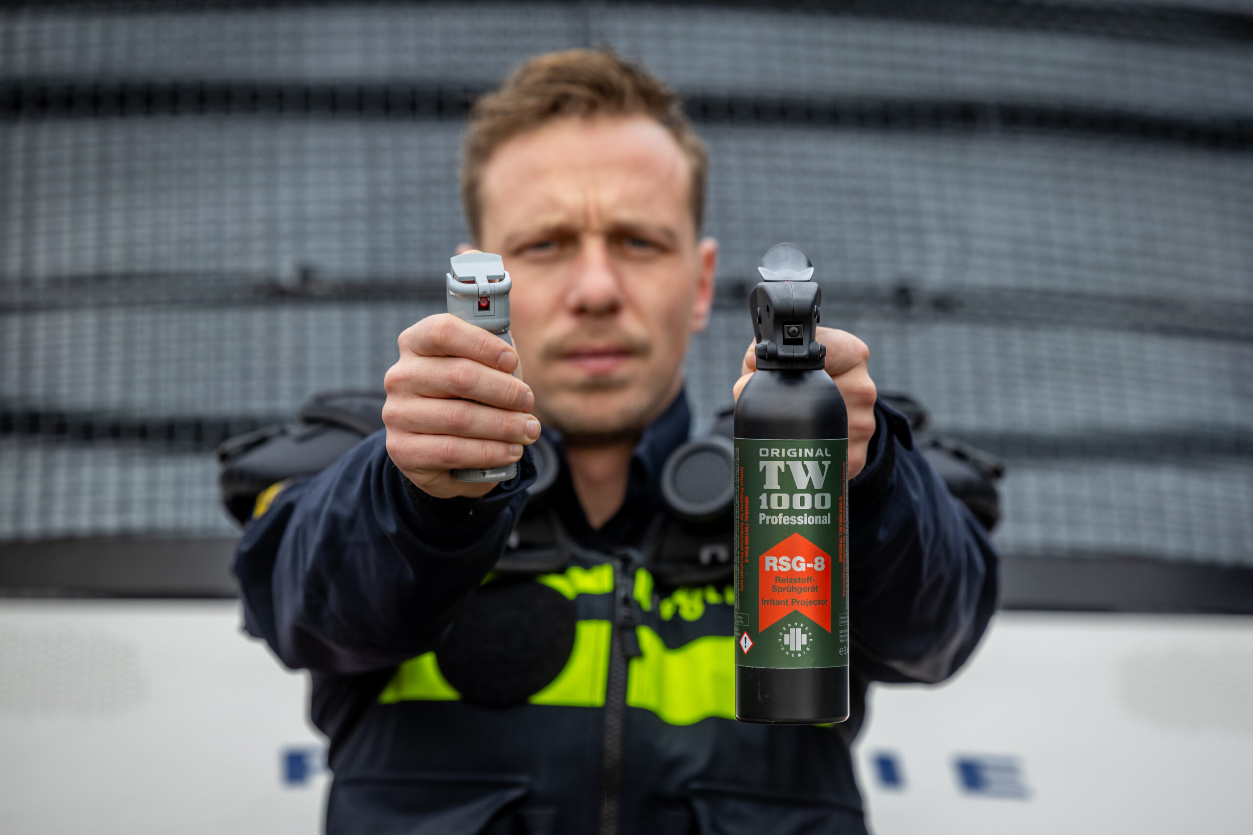 NEDERLAND – De Mobiele Eenheid is tijdens de jaarwisseling voor het eerst uitgerust met een nieuwe, krachtigere variant van pepperspray. De nieuwe spuitbussen hebben een inhoud van 400 milliliter en een bereik tot 7 meter, aanzienlijk groter dan de bestaande 45 milliliter-bussen.