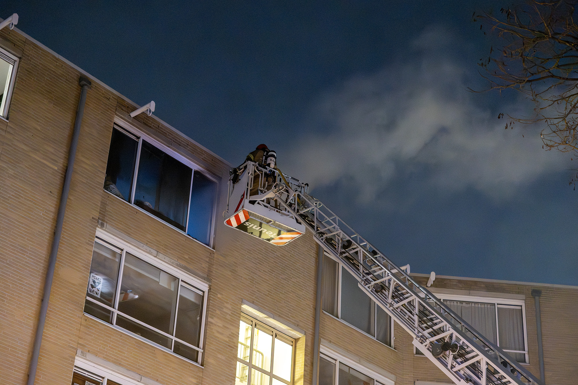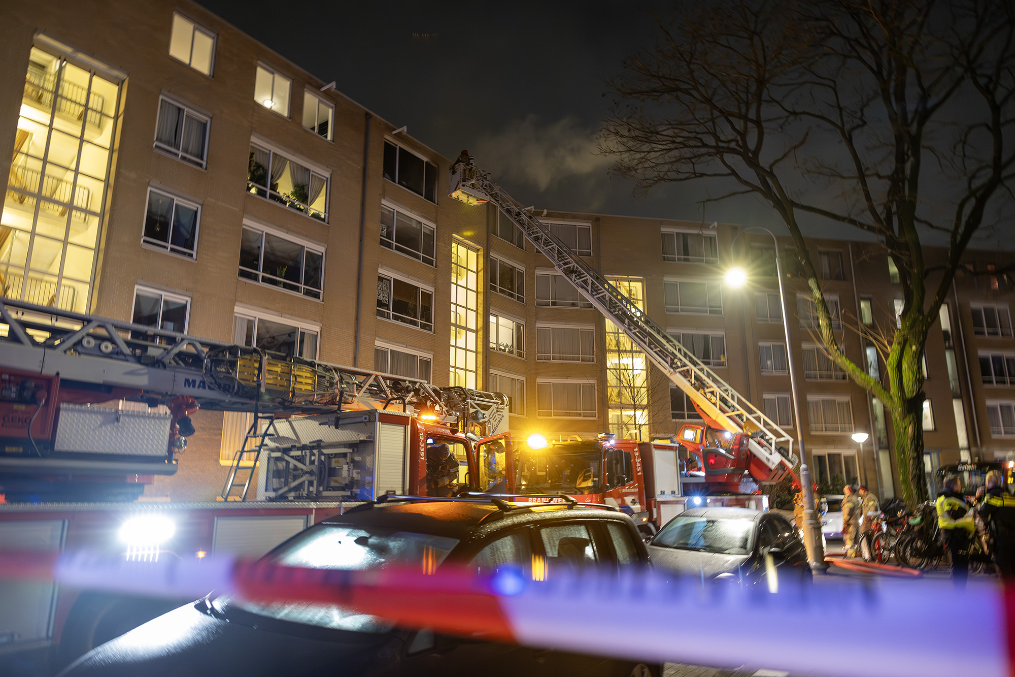 AMSTERDAM – Even na half vijf is een felle woningbrand uitgebroken in een appartementencomplex aan de Spitsbergenstraat in Amsterdam. De brand woedde in het bovenste appartement van het complex en heeft de woning grotendeels verwoest.