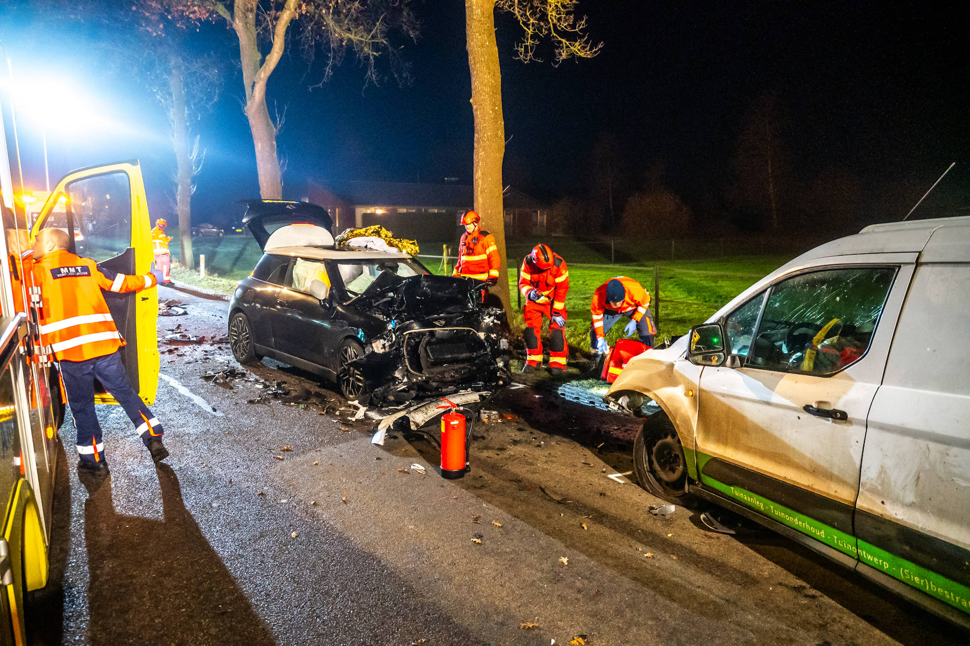 NIEBERT – Op de Boerakkerweg tussen Boerakker en Niebert zijn zaterdagavond rond 20.38 uur twee voertuigen frontaal met elkaar in botsing gekomen.