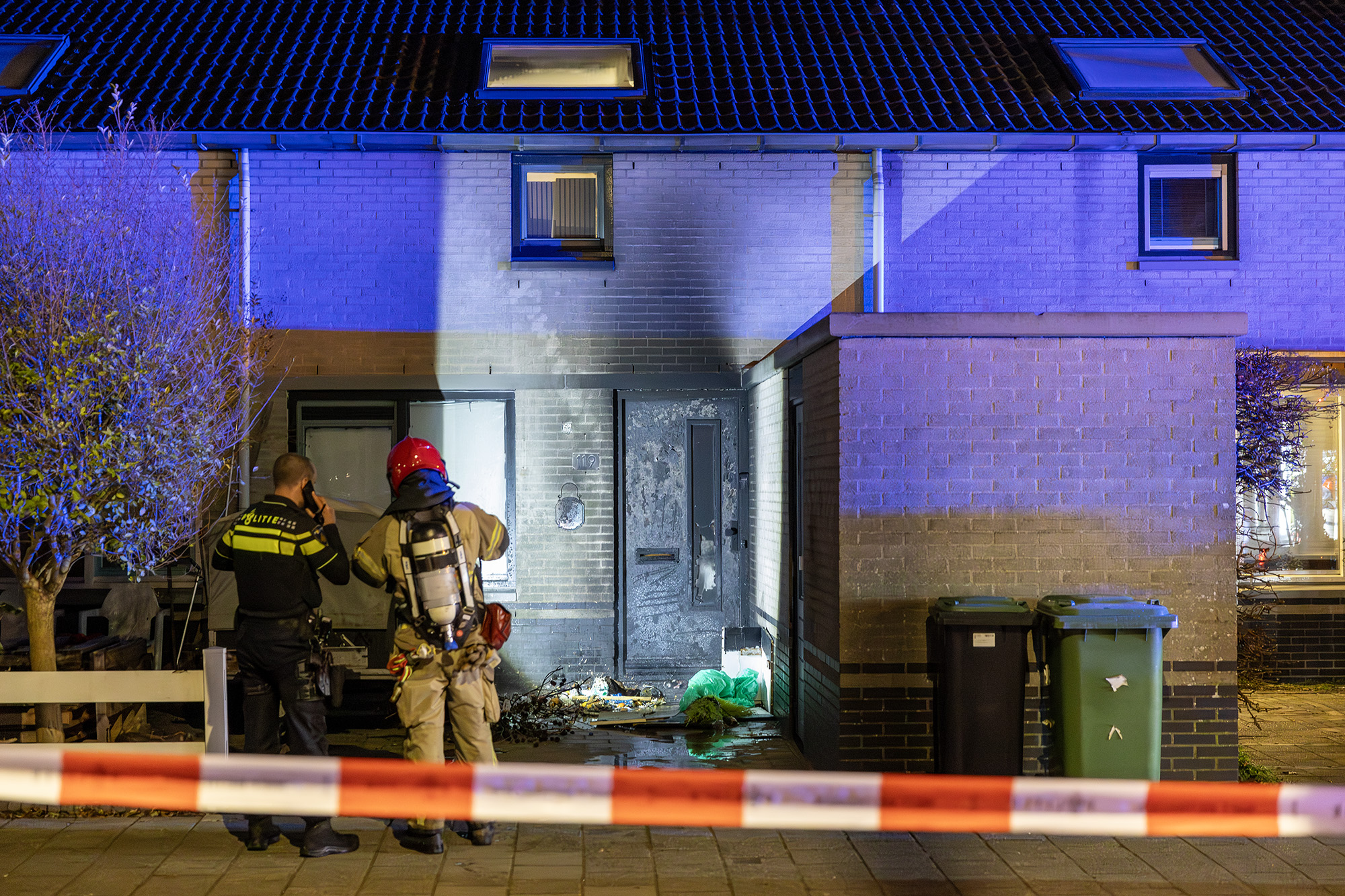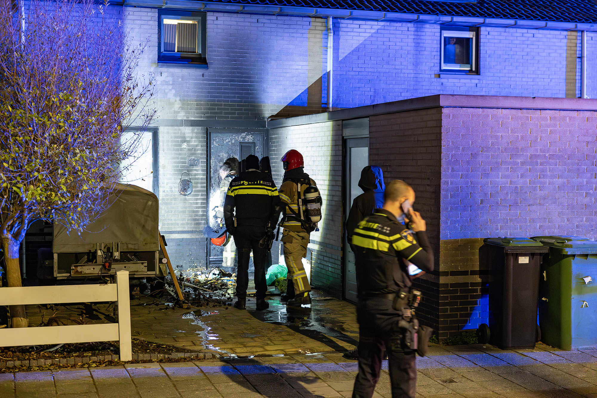 Ter plaatse bleek de voordeur van de woning in brand te hebben gestaan. Het vuur was snel onder controle, maar de deur raakte zwaar beschadigd en is zwartgeblakerd achtergebleven.