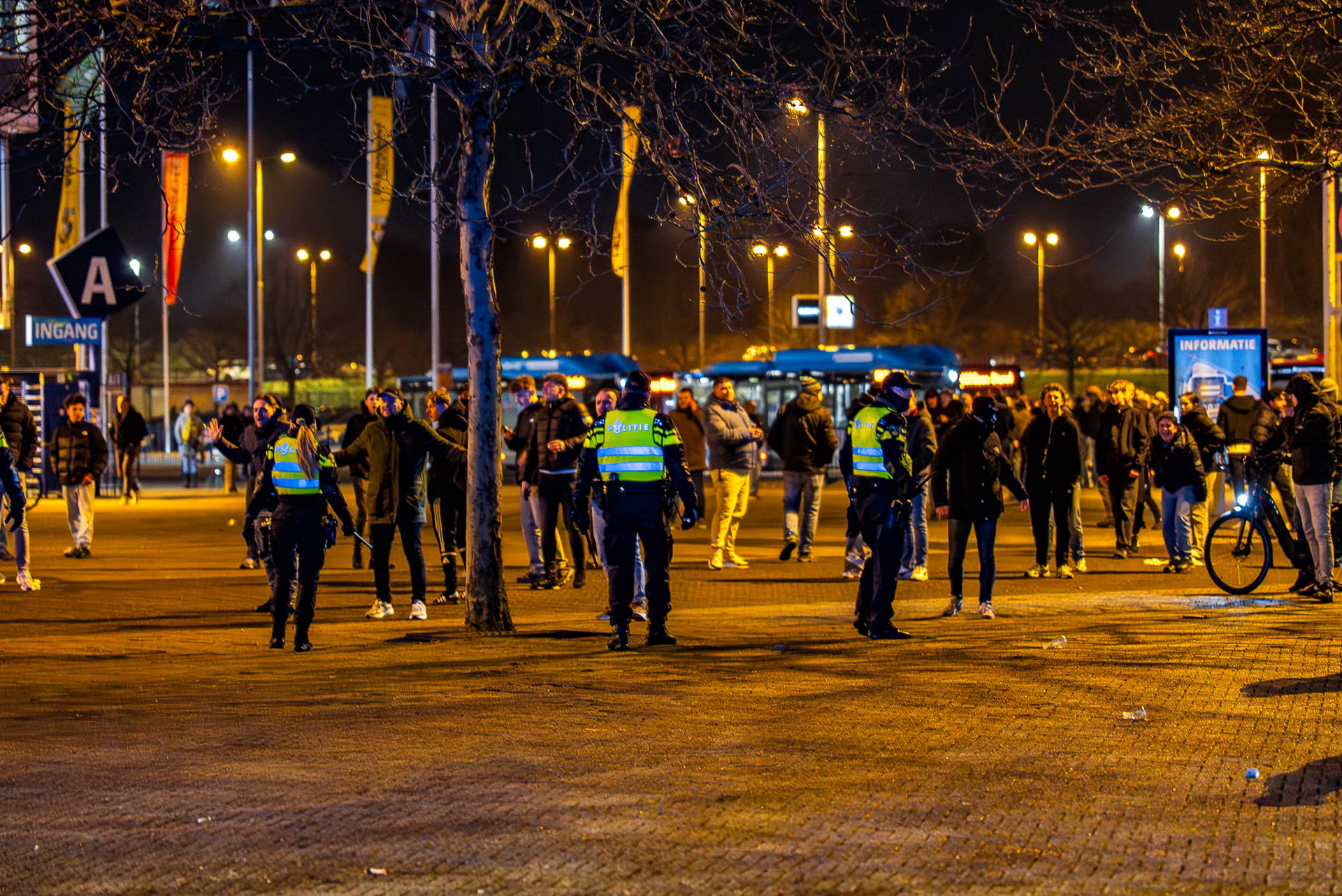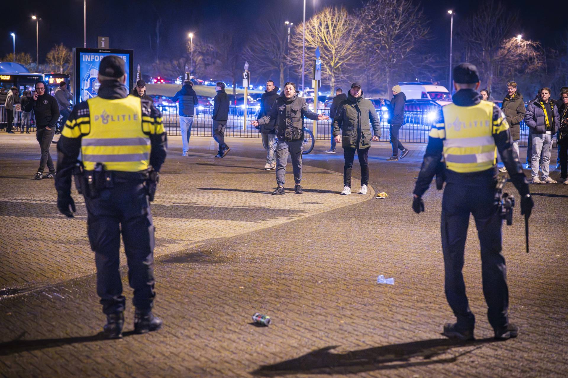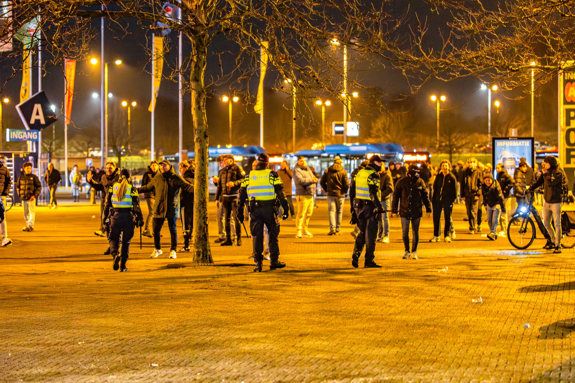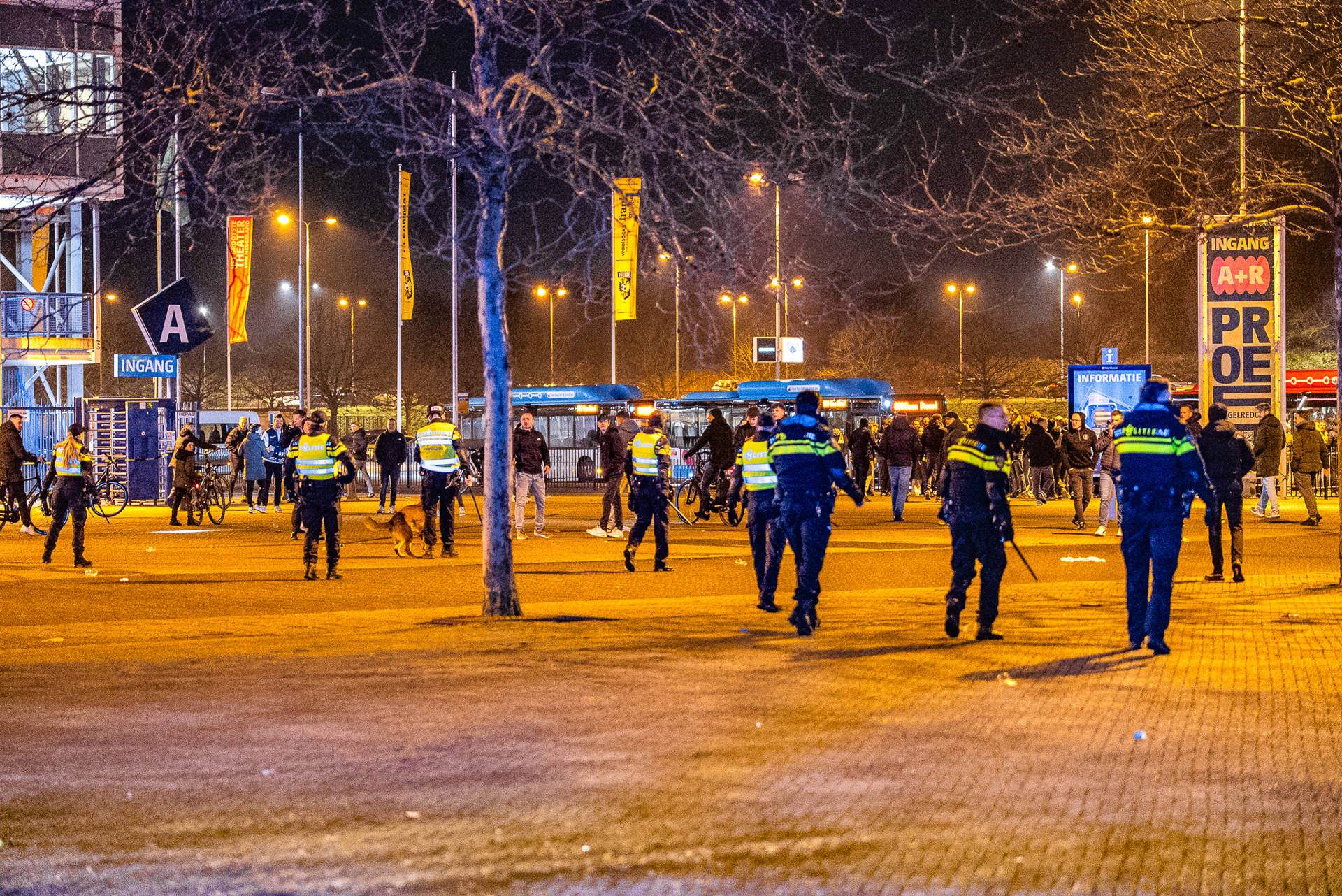 Minstens één persoon is aangehouden. Kort na het ingrijpen keerde de rust terug in en rond het stadion.