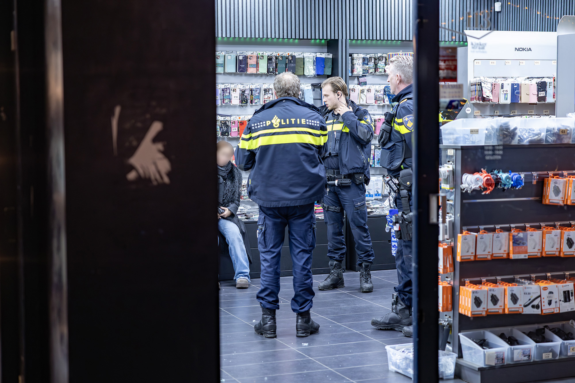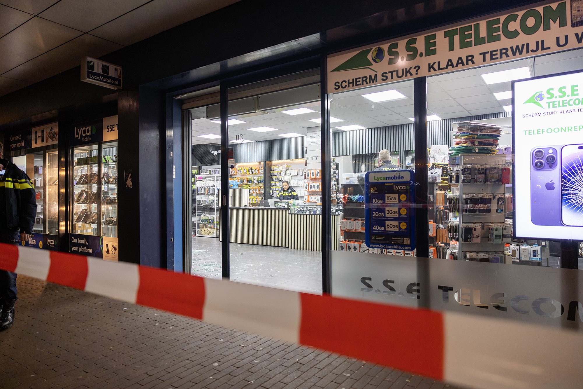 Telecomwinkel overvallen, vitrine vernield en politiehelikopter ingezet