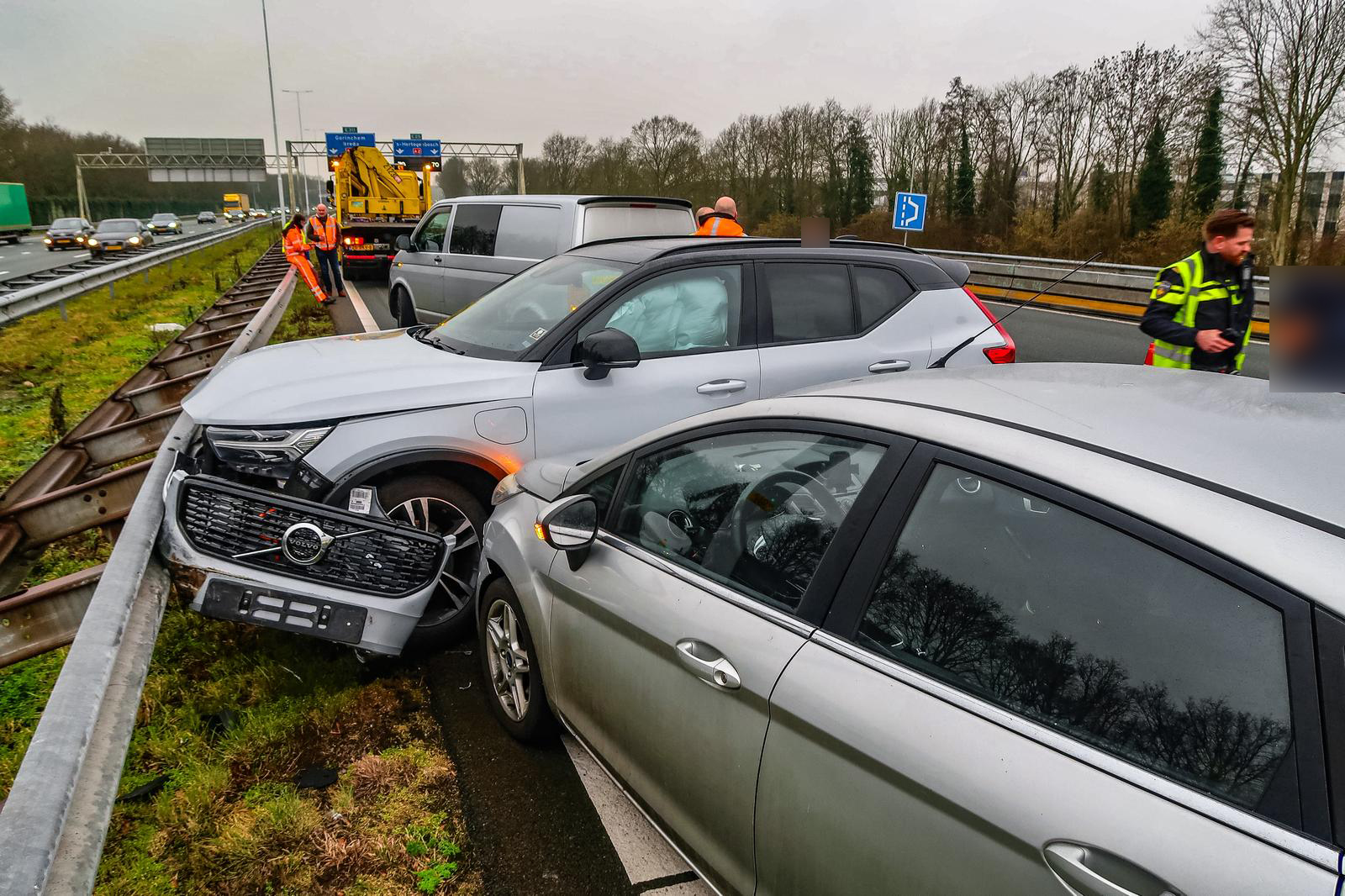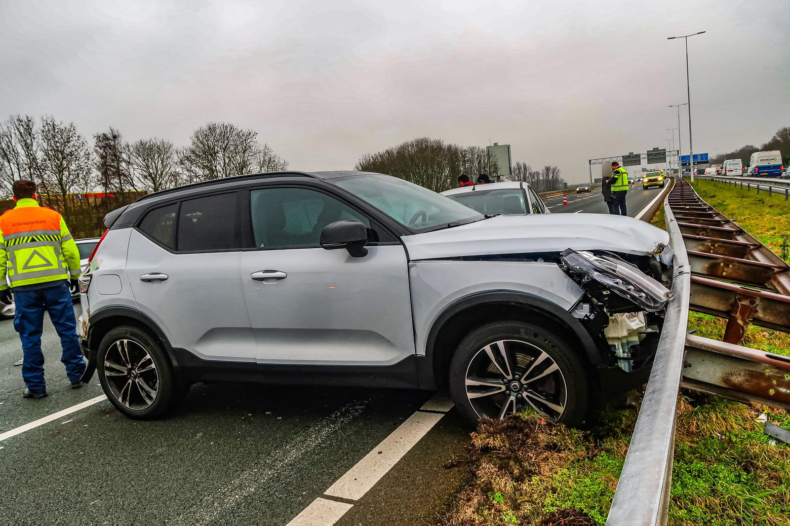 Auto botst tegen vangrail op snelweg, rijstroken tijdelijk dicht