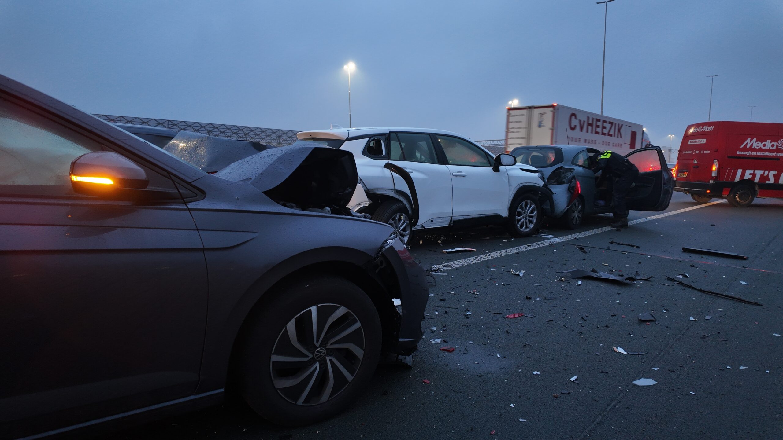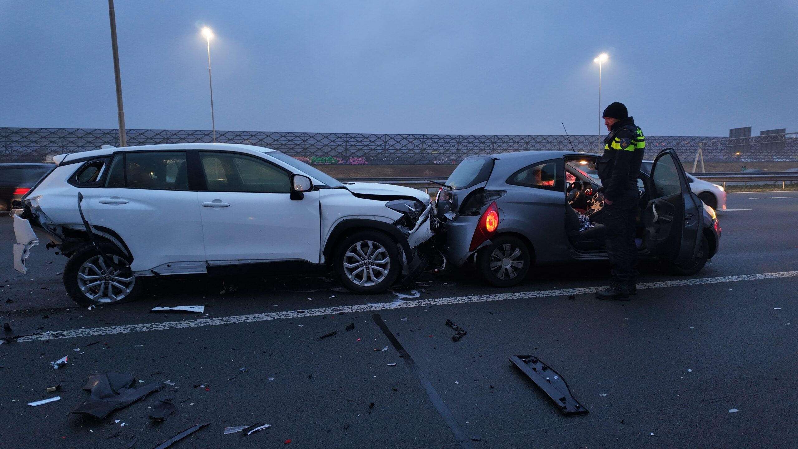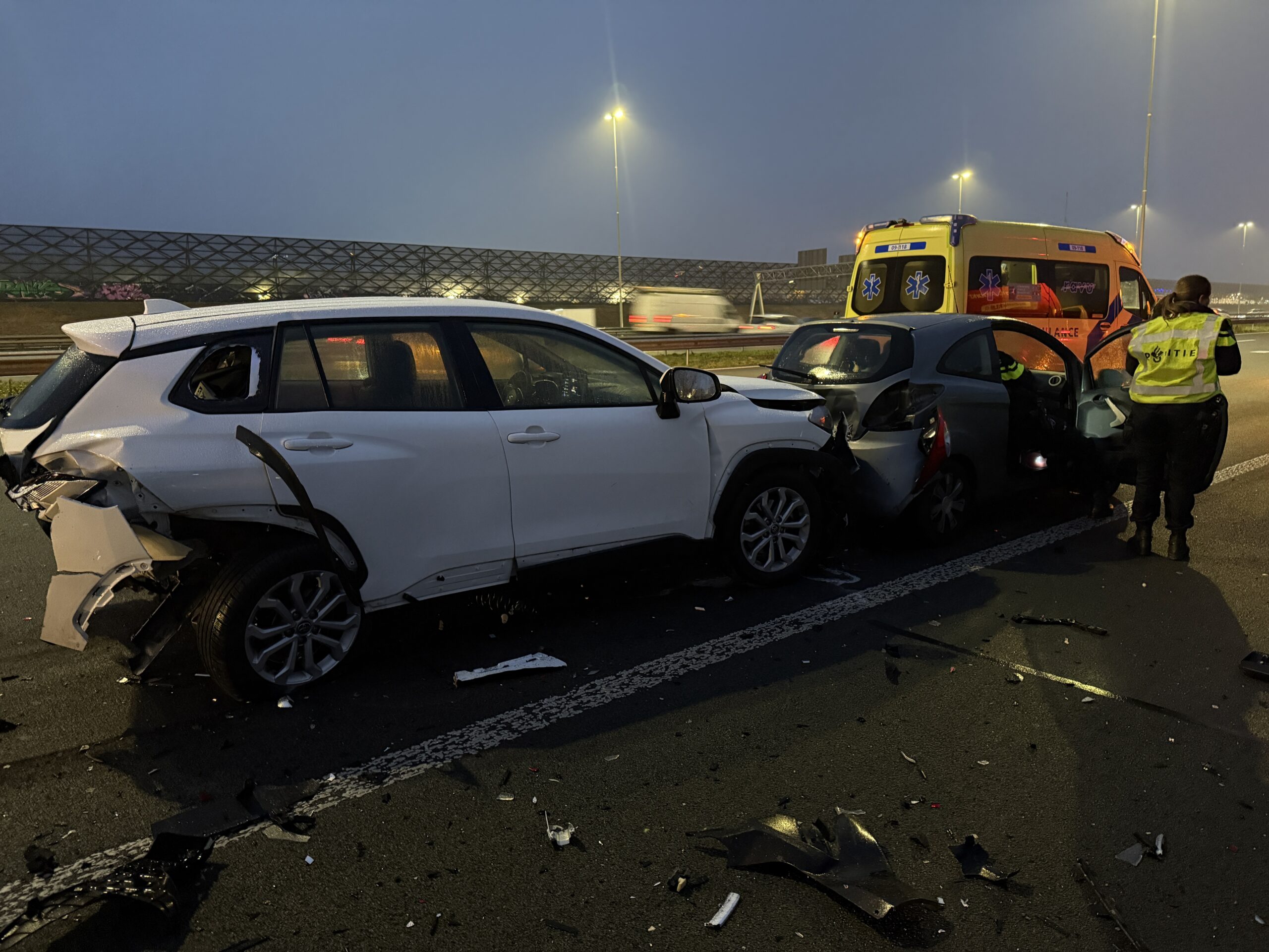 Kettingbotsing met vijf auto’s op snelweg, meerdere inzittenden gewond