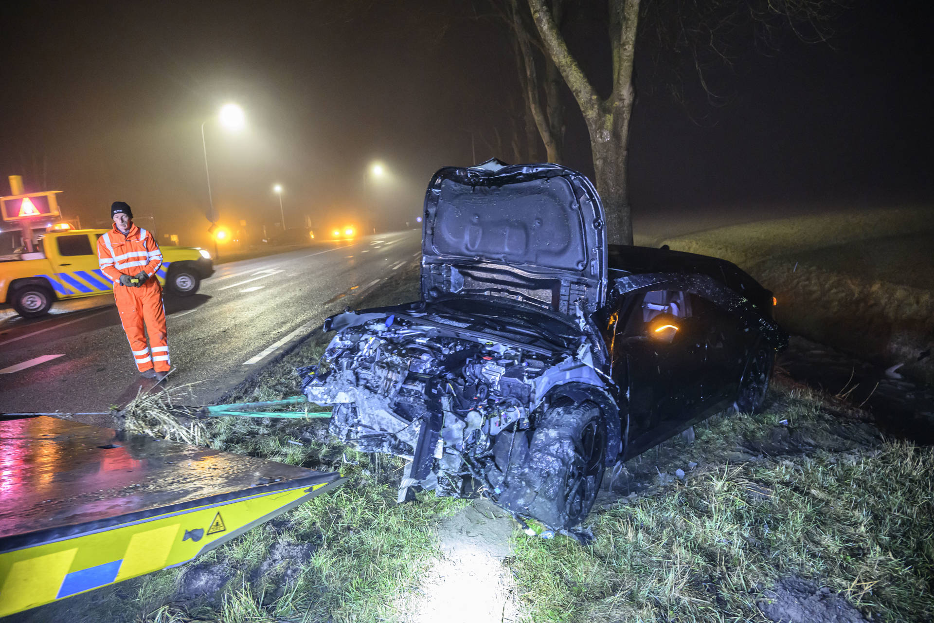 Het ging om een kop-staartbotsing tussen twee voertuigen, waarbij één van de auto’s als gevolg van de aanrijding in een sloot terechtkwam. Beide bestuurders bleven ongedeerd. Het andere voertuig kwam ongeveer een kilometer verderop tot stilstand.