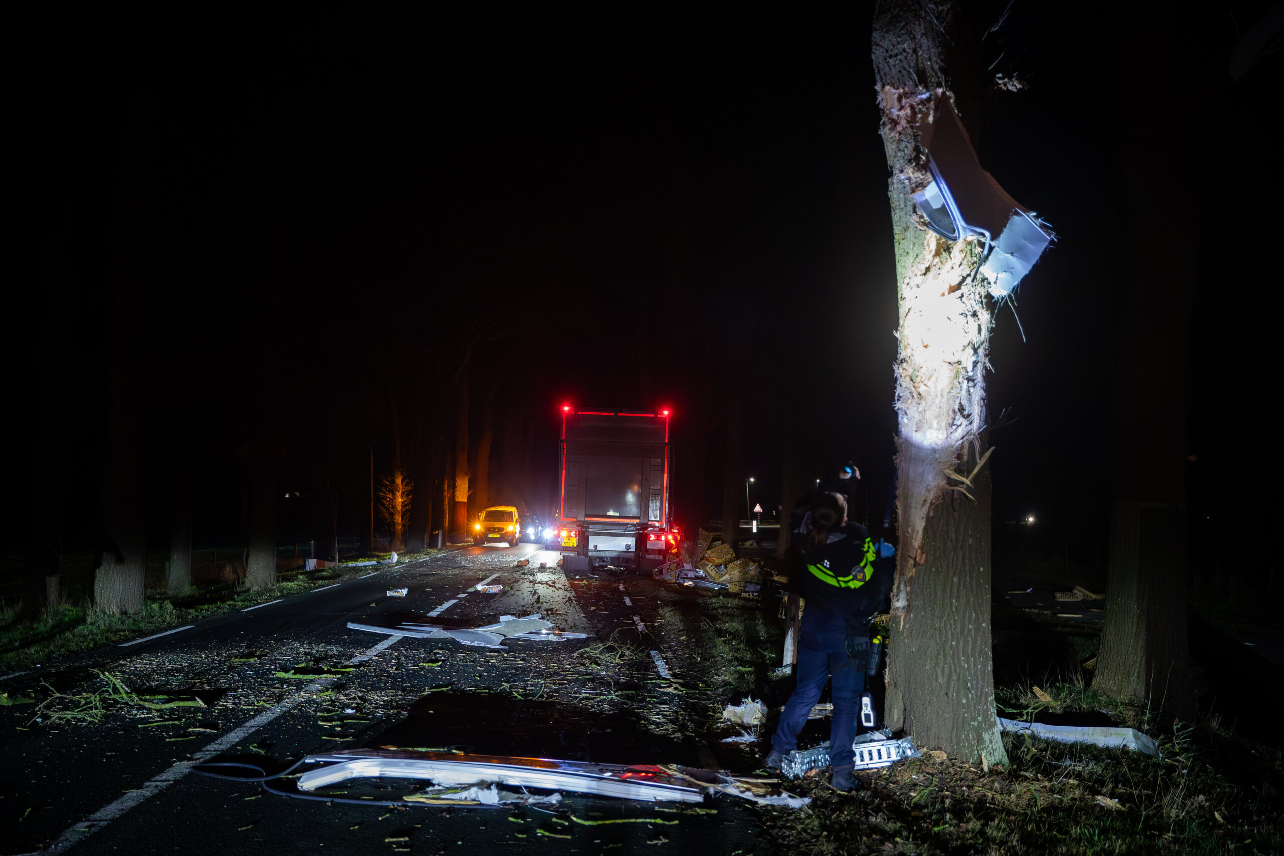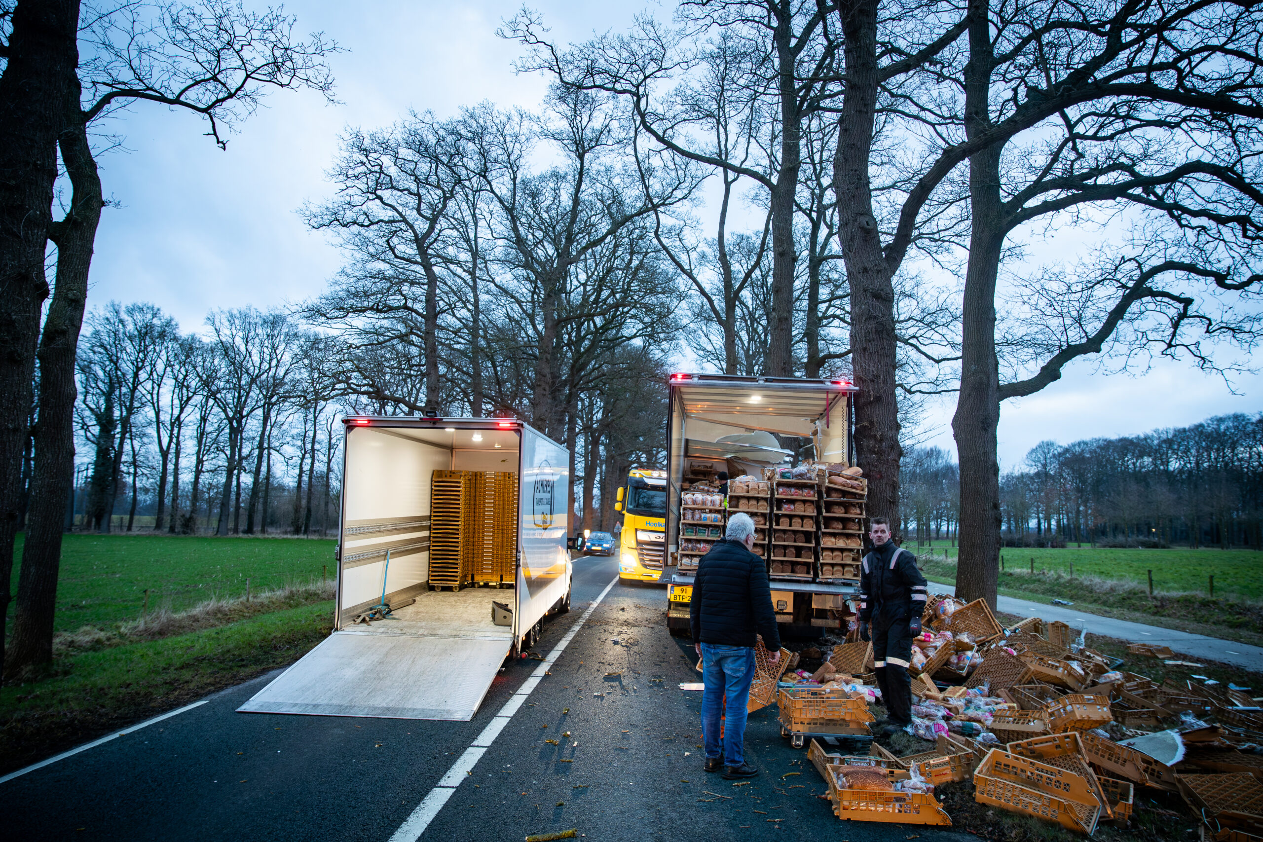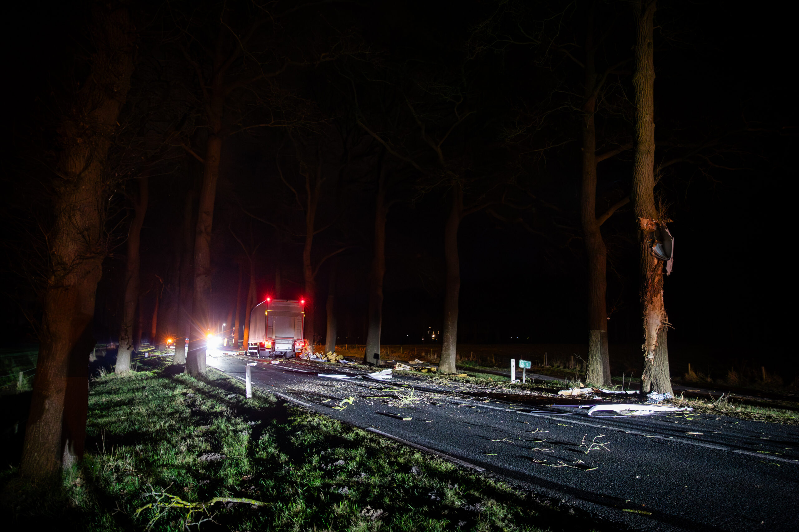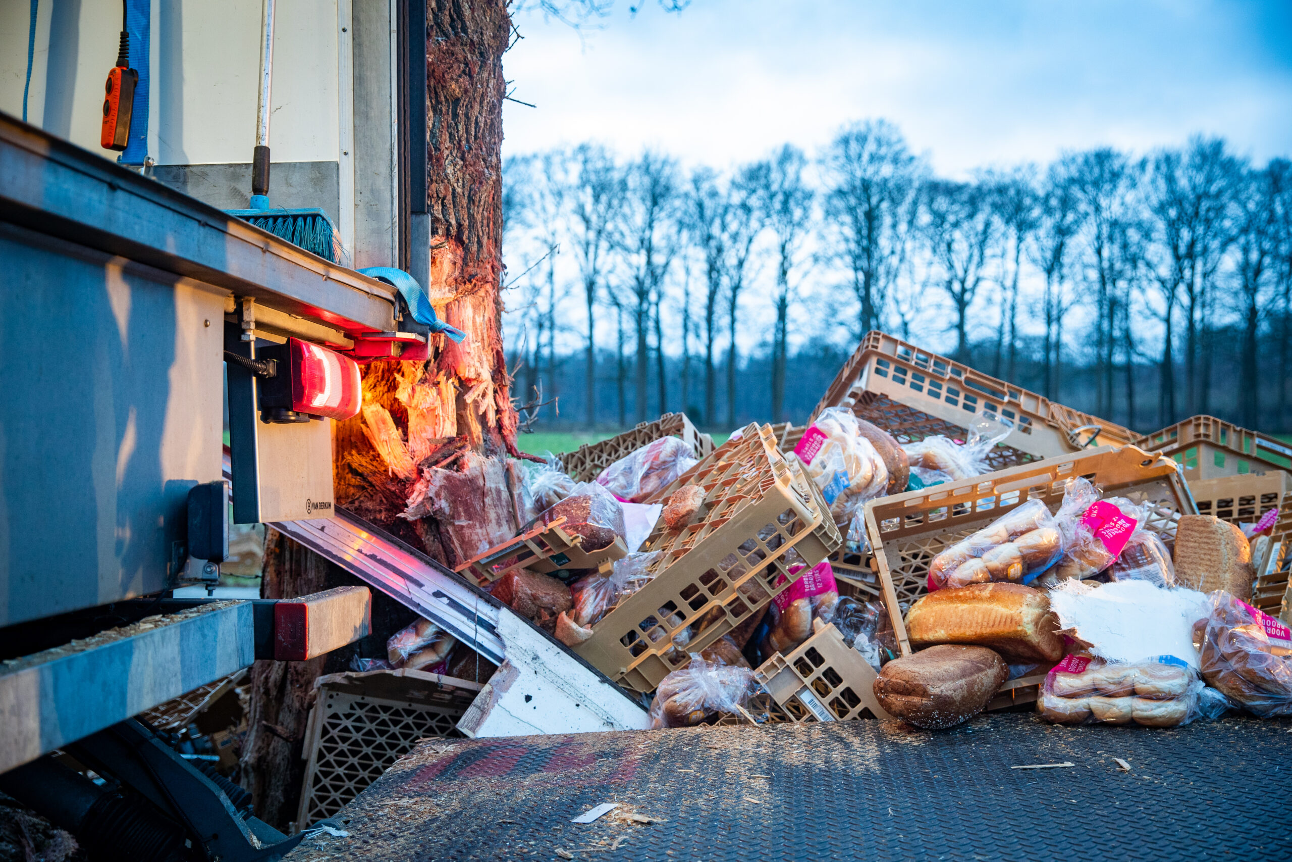 DALFSEN – Een vrachtwagen is zaterdagochtend op de Poppenallee (N757) bij Dalfsen tegen twee bomen gebotst, vlak voor een spoorwegovergang. De chauffeur, die onderweg was met een lading brood en witte bolletjes voor een supermarkt, zou achter het stuur in slaap zijn gevallen.