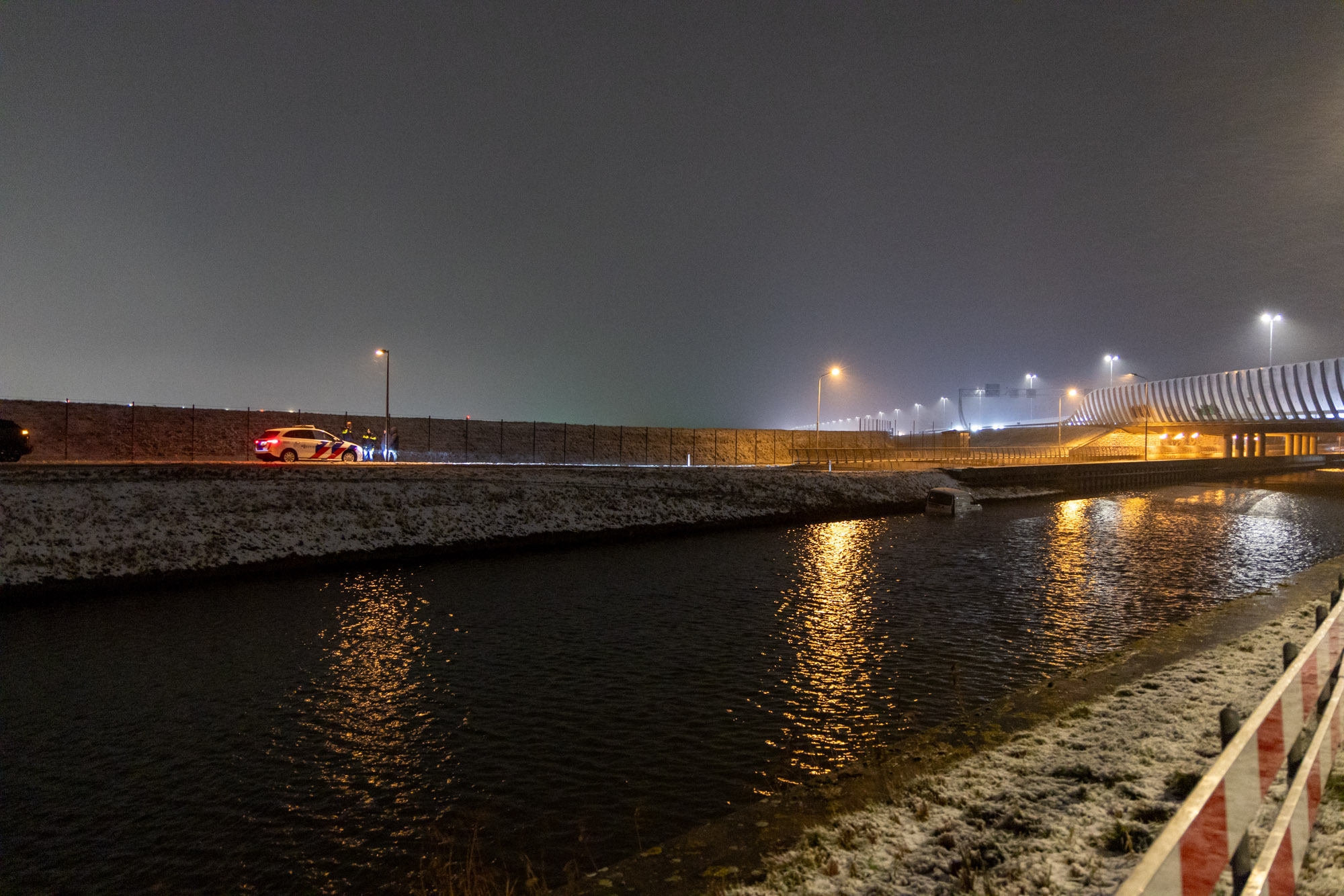 De exacte toedracht van het ongeval is niet bekend. Mogelijk speelde de gevallen sneeuw een rol. Een bergingsbedrijf zal het voertuig uit de Hoofdvaart halen.
