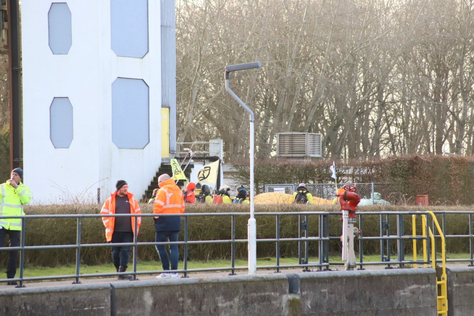 De demonstranten blokkeerden het schip terwijl het halverwege de sluis lag. Daardoor konden meerdere schepen de sluis niet verlaten. De voorste schipper probeerde de actie te beëindigen door de demonstranten met een brandslang weg te spuiten, maar de politie wist dit te voorkomen.