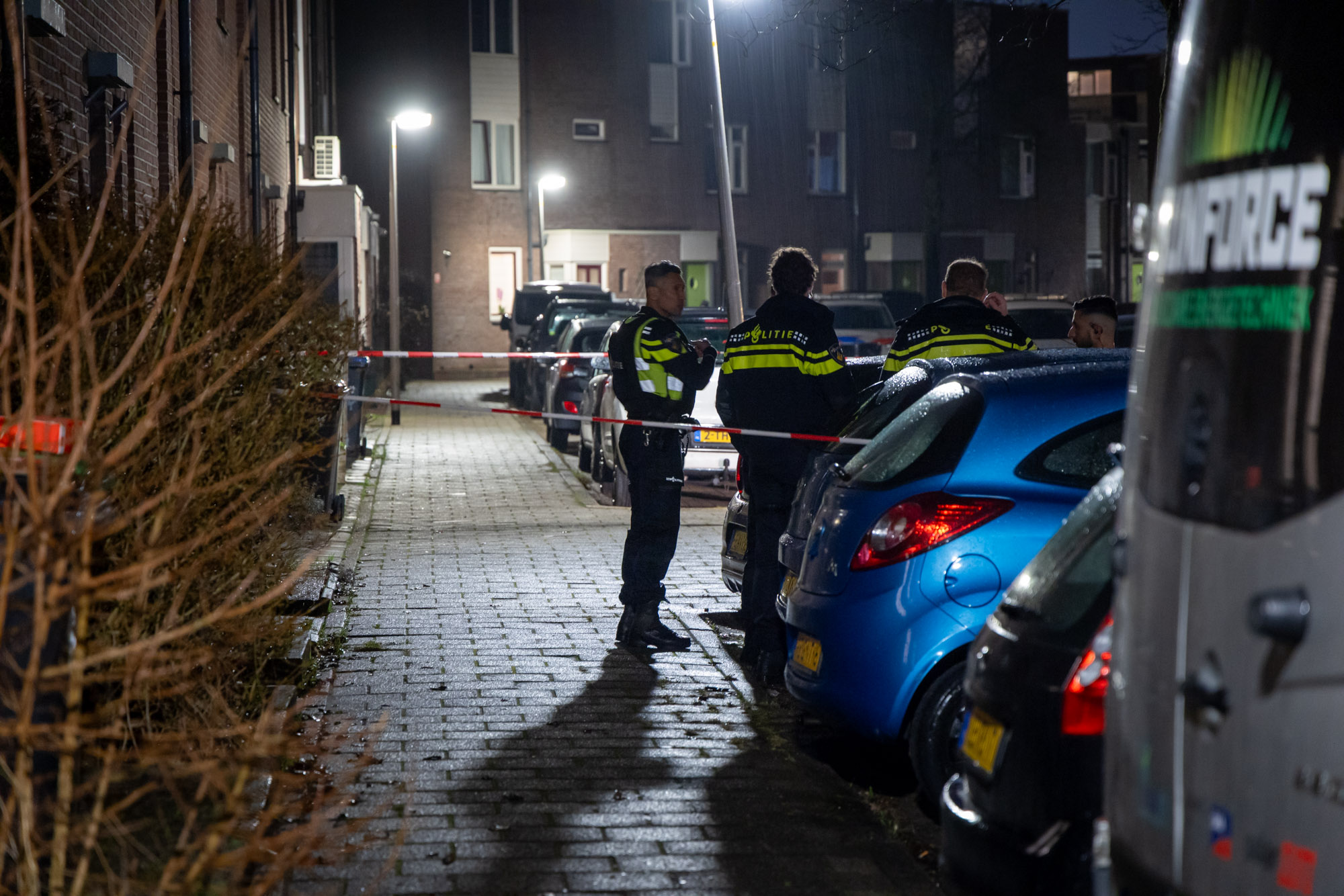 Rond kwart over tien kwam bij de politie een melding binnen dat er geschoten zou zijn, bij aankomst bleek dat er op één woning was geschoten. In een voordeur trof de politie een inslag aan van een kogel. De straat werd direct afgezet, en met een hondengeleider is de straat doorzocht voor eventuele sporen.
