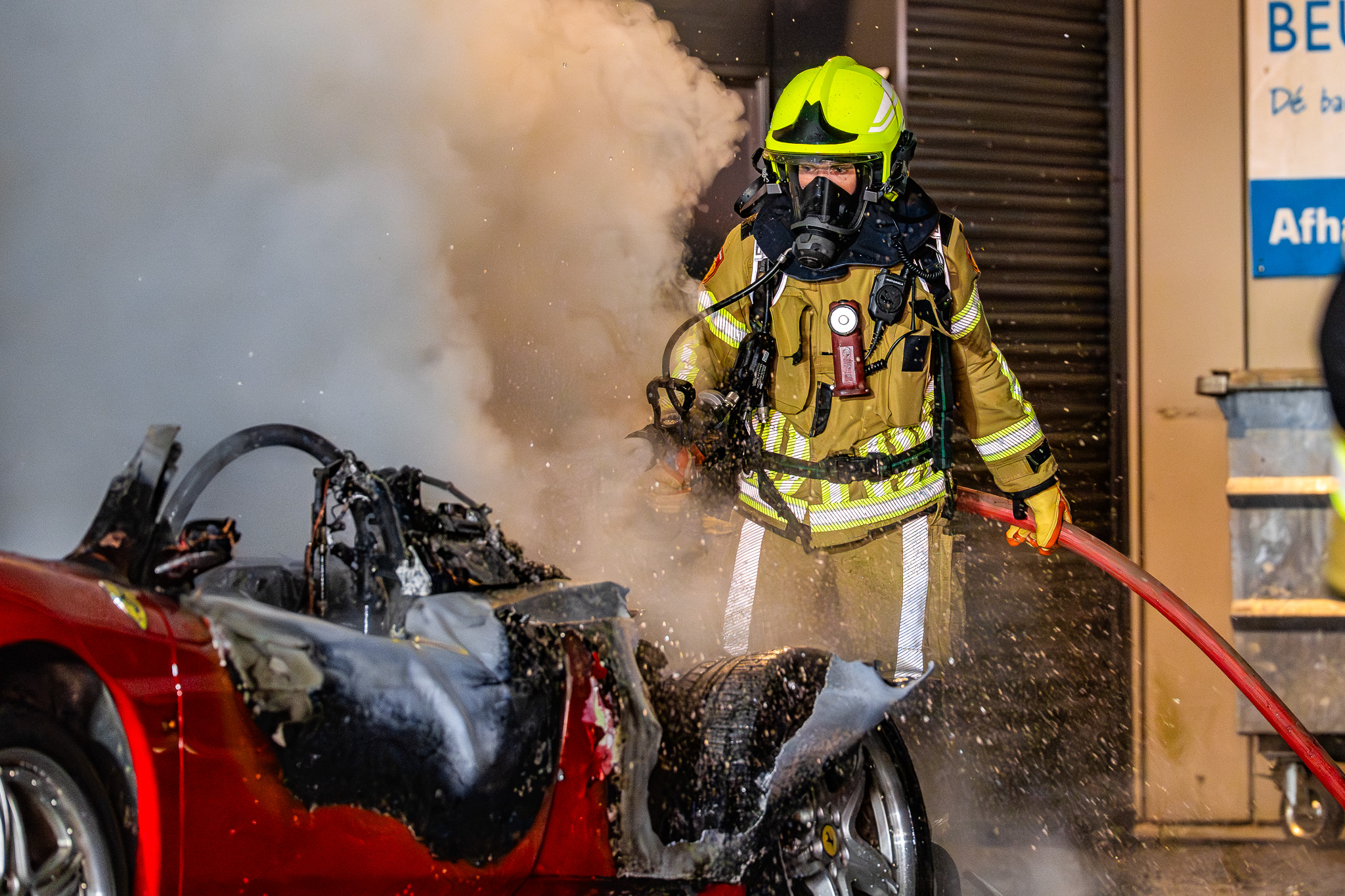 Ferrari volledig verwoest door brand