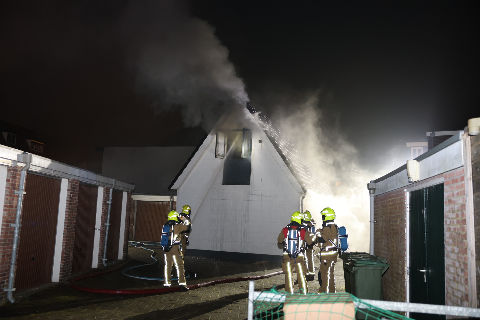 Kort na het uitbreken van de brand waren volgens buurtbewoners enkele explosies te horen. Het is nog niet duidelijk wat daarbij precies is ontploft. Vanwege de situatie schaalde de brandweer al snel op naar middelbrand en kwamen meerdere voertuigen ter plaatse.