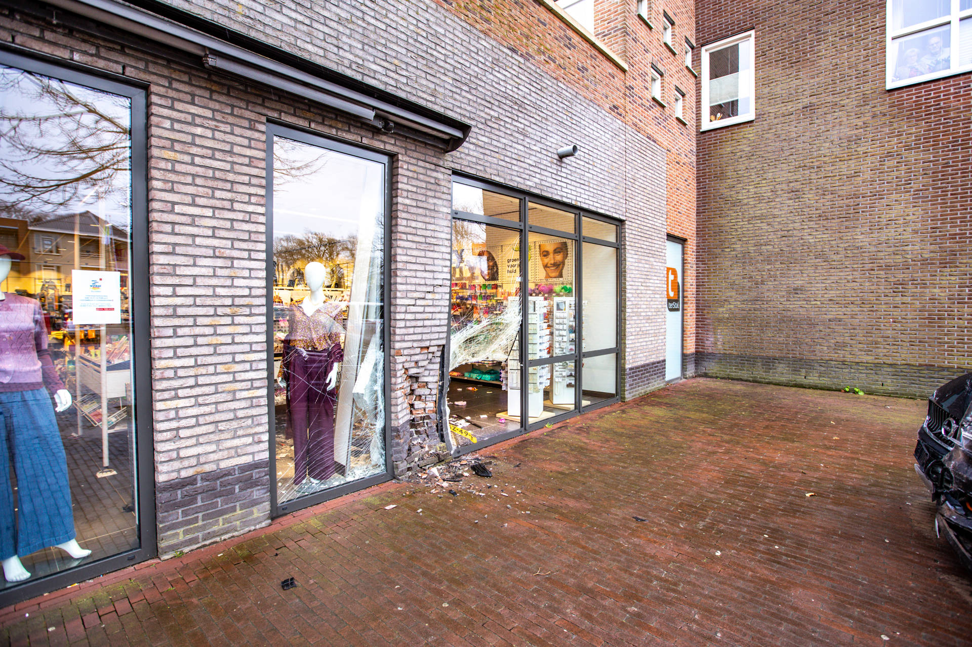 Het ongeval gebeurde rond 14.10 uur. De bestuurder wilde achteruitrijden, maar reed per ongeluk vooruit en botste vervolgens tegen de pui van de winkel. Bij het eenzijdige ongeluk raakte niemand gewond.