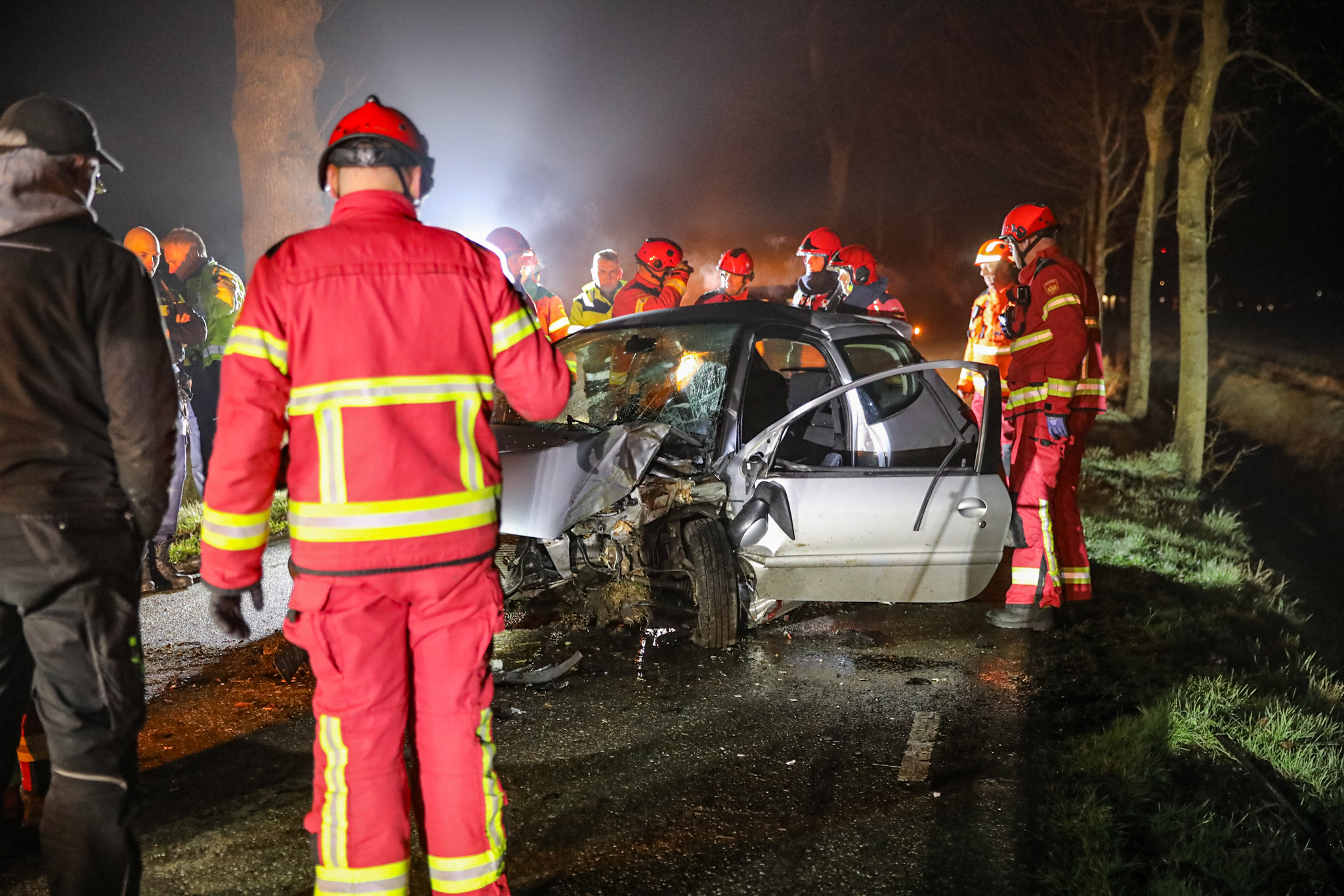 De brandweer heeft de bestuurder uit de auto bevrijd. Het slachtoffer is daarna in de ambulance behandeld en met spoed naar het ziekenhuis gebracht.