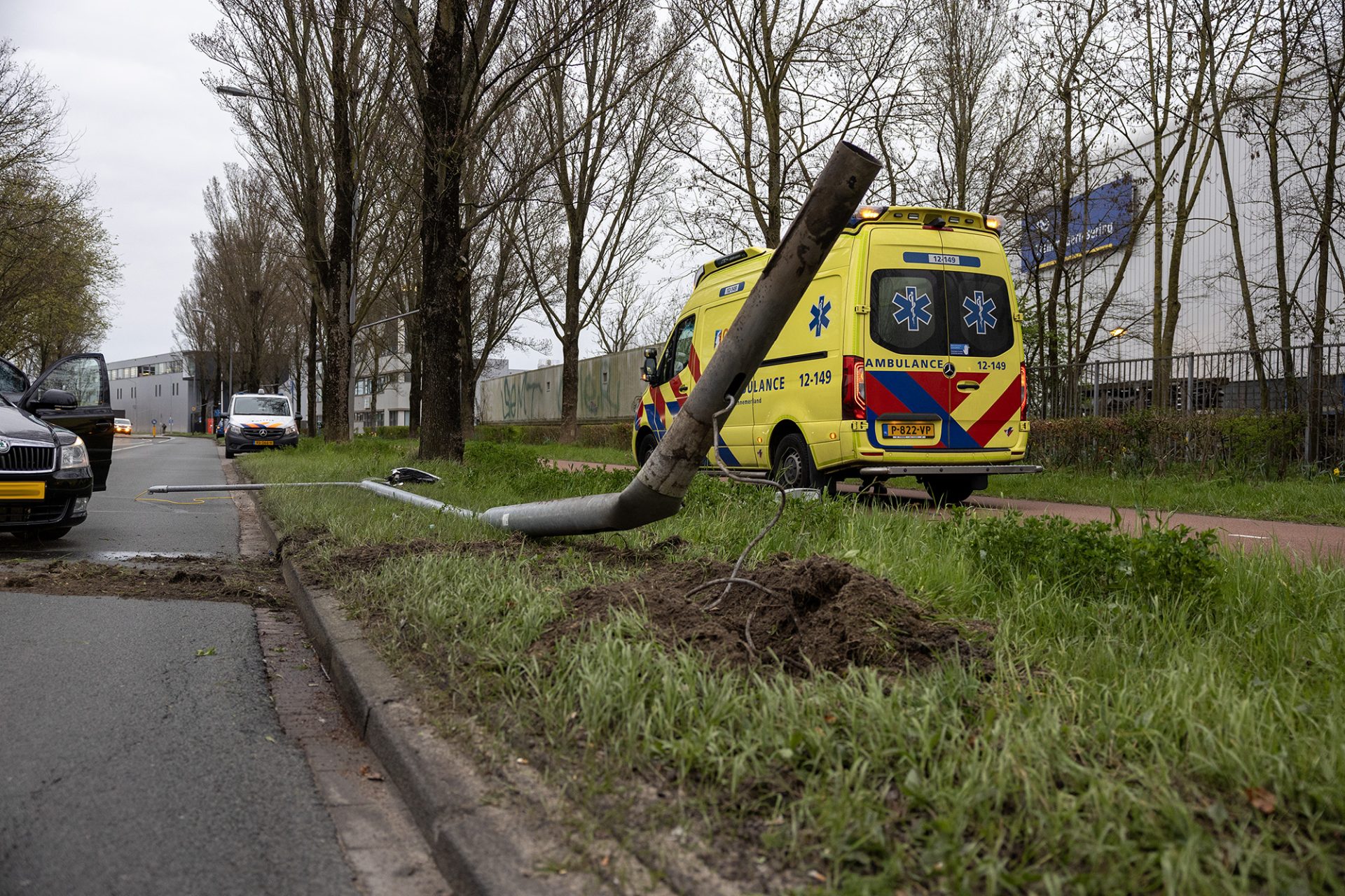 Weg dicht na crash met lantaarnpaal, inzittende gewond
