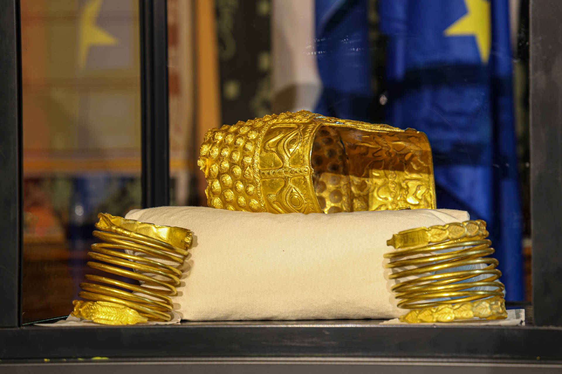 De helm, die ongeveer 2500 jaar oud is, geldt als een belangrijk cultureel symbool voor Roemenië. Het voorwerp maakte deel uit van een tentoonstelling met archeologische schatten uit dat land. De teruggevonden objecten werden tijdens de bijeenkomst onder strenge beveiliging getoond.