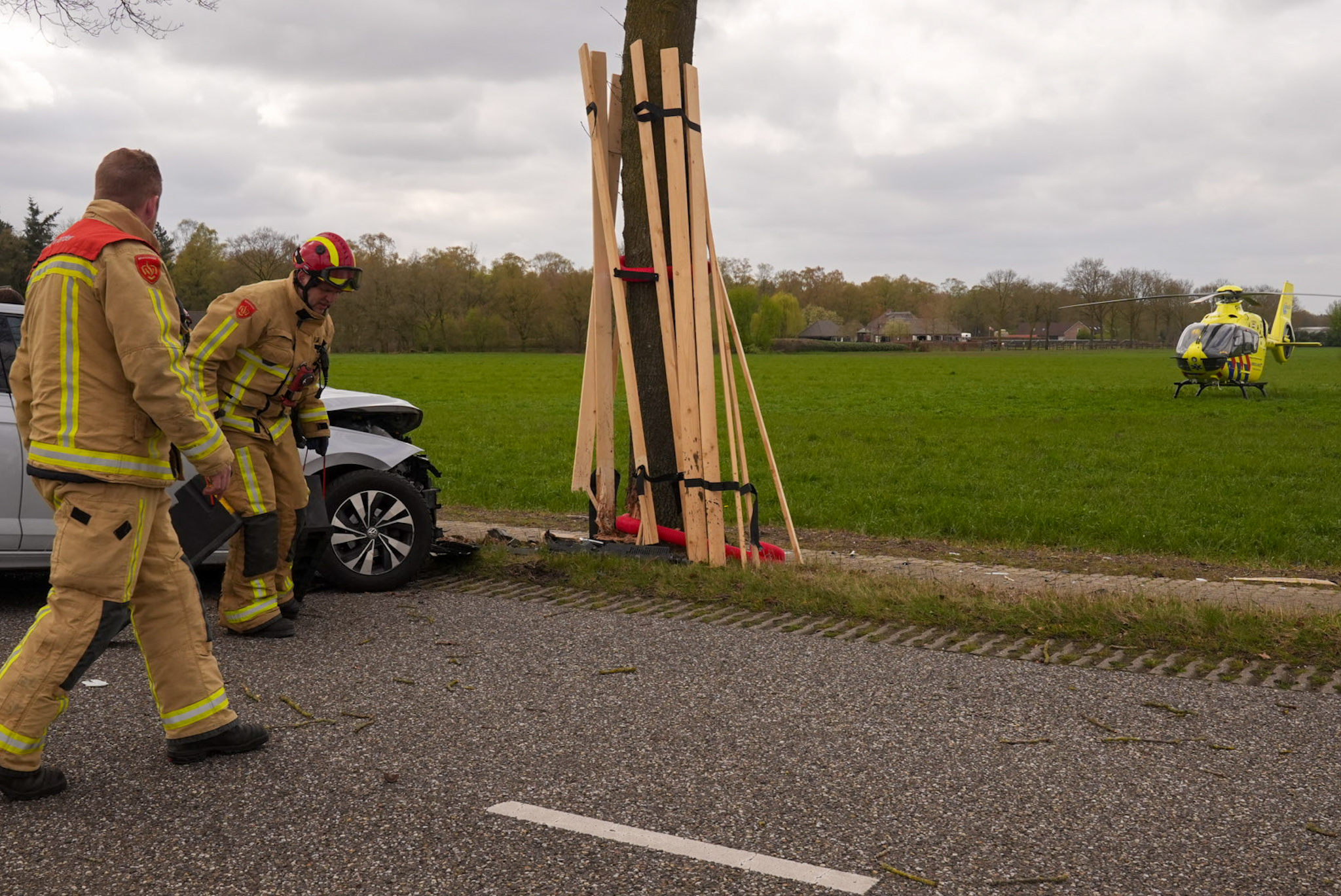 Bestuurder ernstig gewond na botsing tegen boom, traumahelikopter ingezet