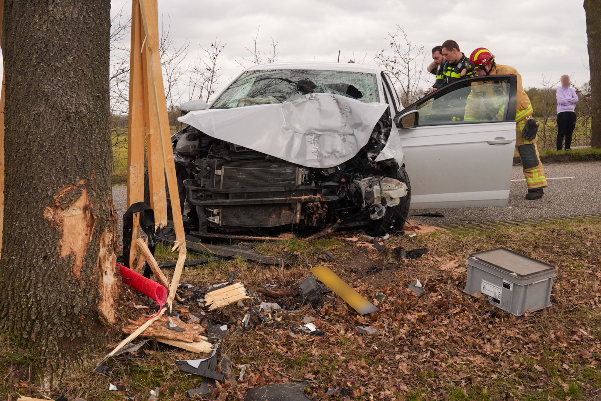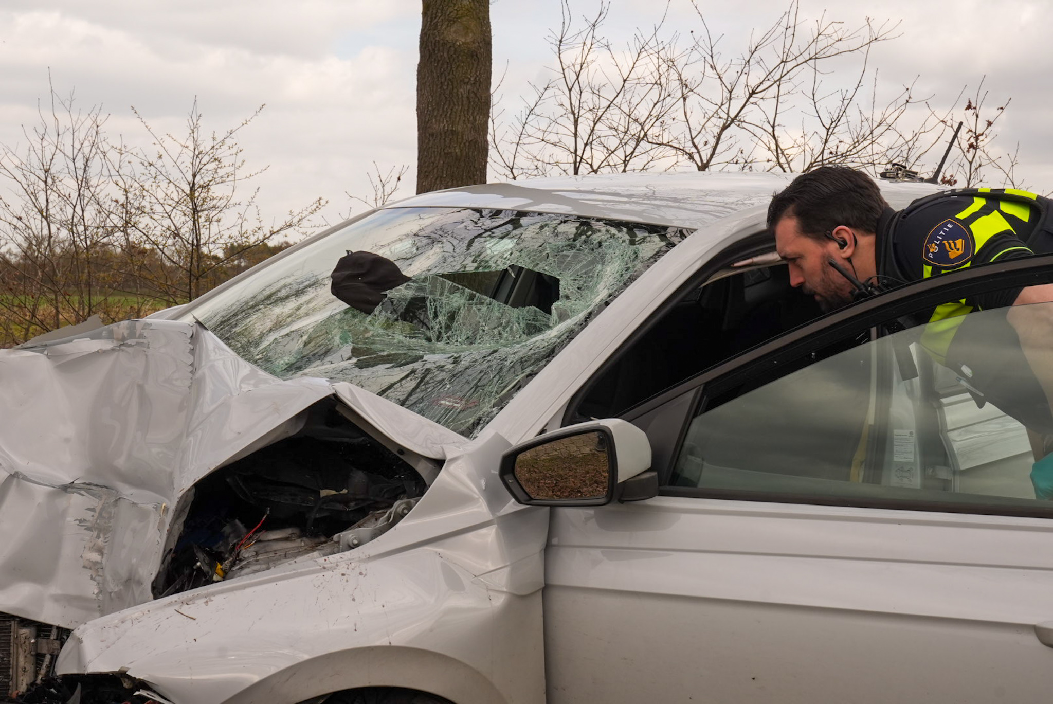 De oorzaak van het ongeval is nog onbekend. In de auto lagen enkele blikjes bier. Door de klap zat de baseballpet van de bestuurder vast in de voorruit. De politie onderzoekt de toedracht van het incident.