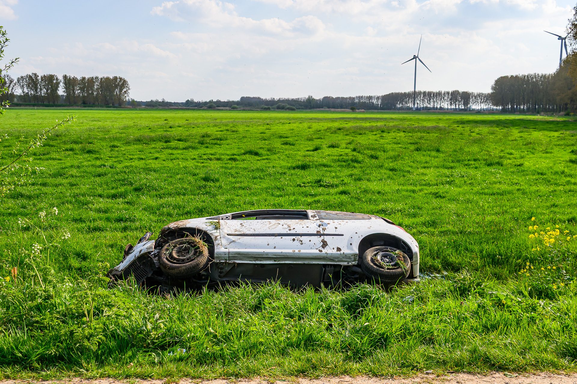 De auto, met twee inzittenden, reed tussen twee bomen door en kwam op de zijkant in een sloot tot stilstand. Beide inzittenden konden op eigen kracht uit het voertuig klimmen en liepen slechts lichte verwondingen op.