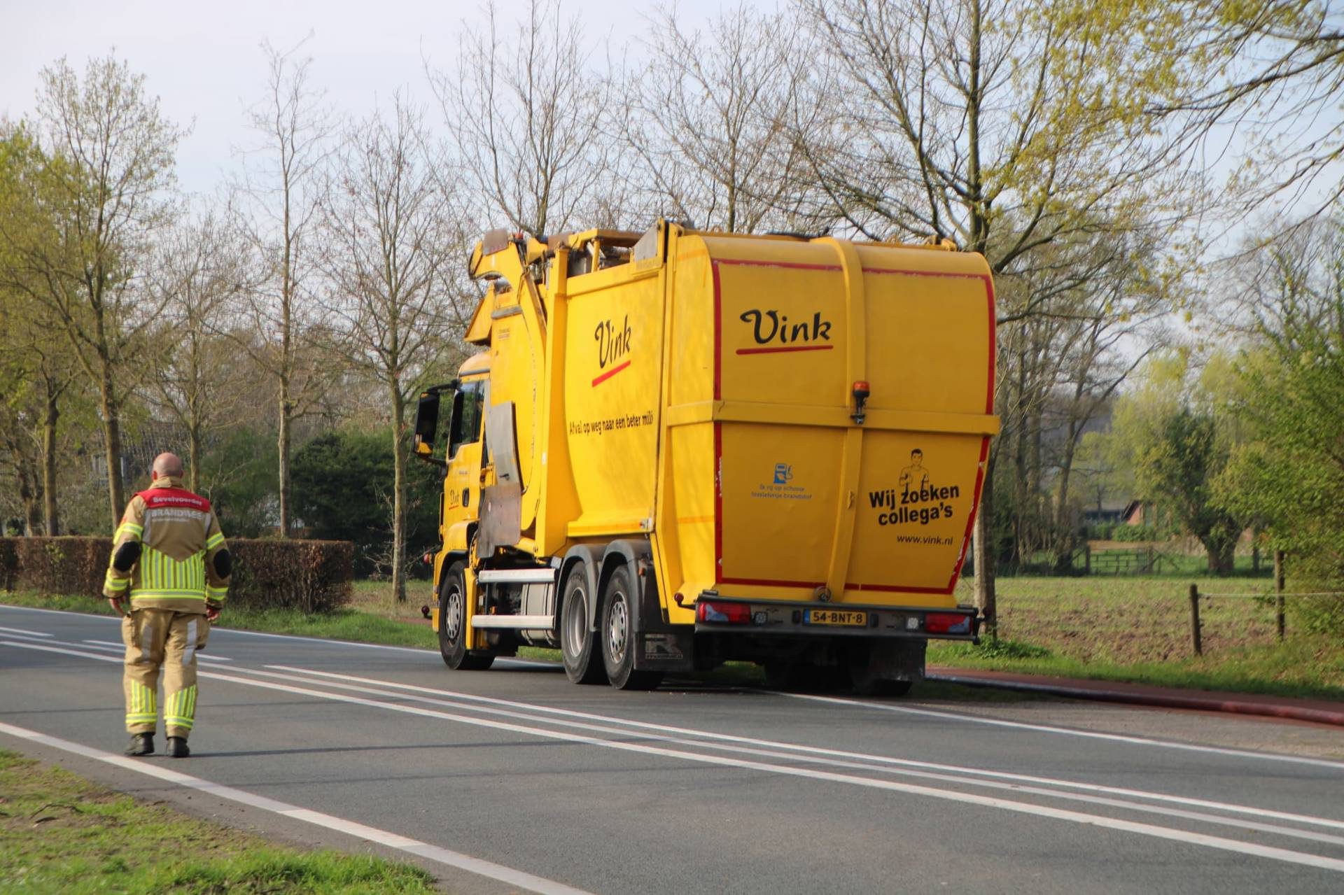 Vuilniswagen dumpt brandend afval midden op straat