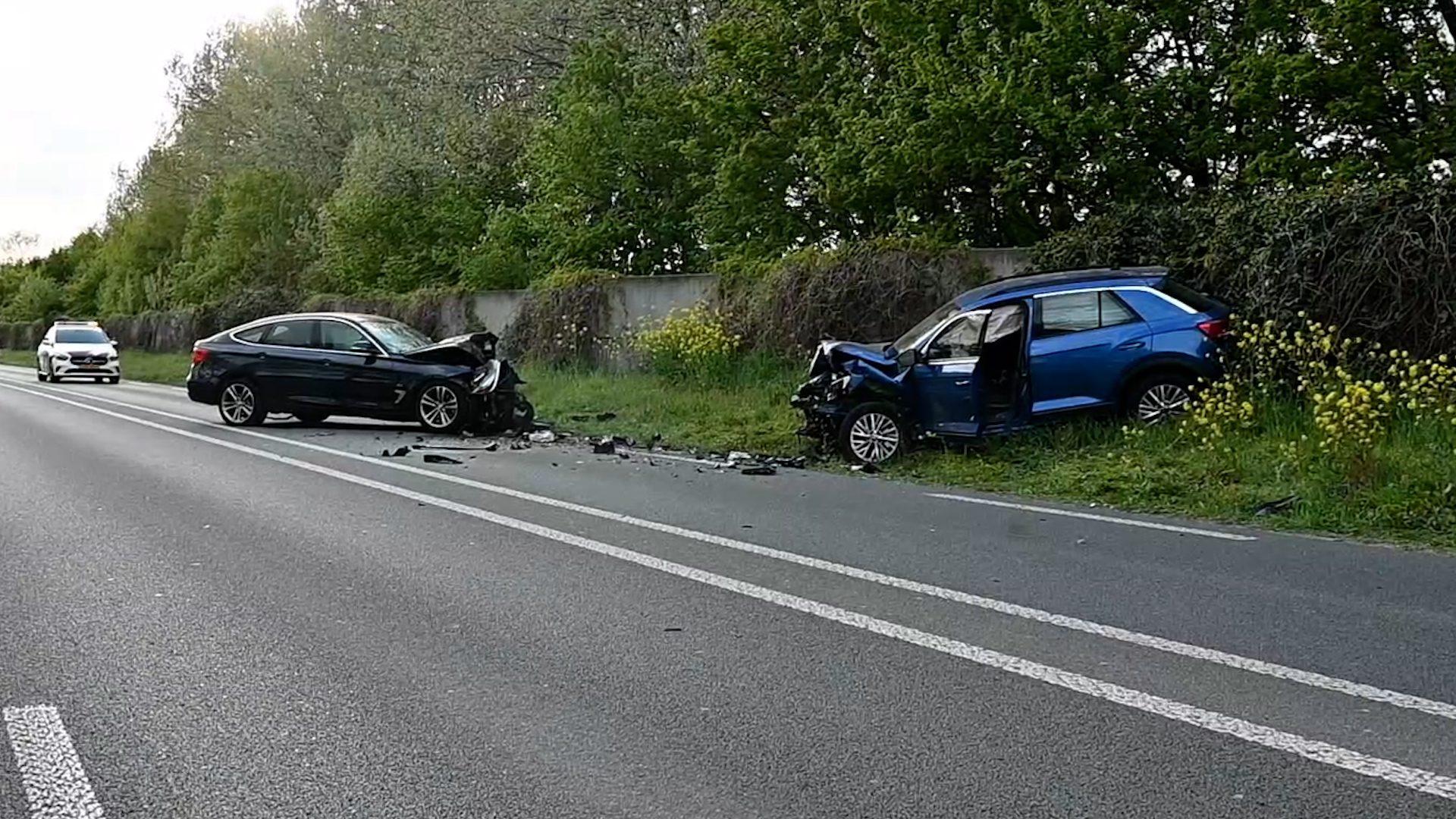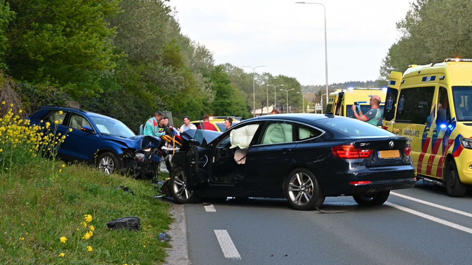 Beide bestuurders raakten gewond en zijn met onbekend letsel overgebracht naar het ziekenhuis voor nader onderzoek.