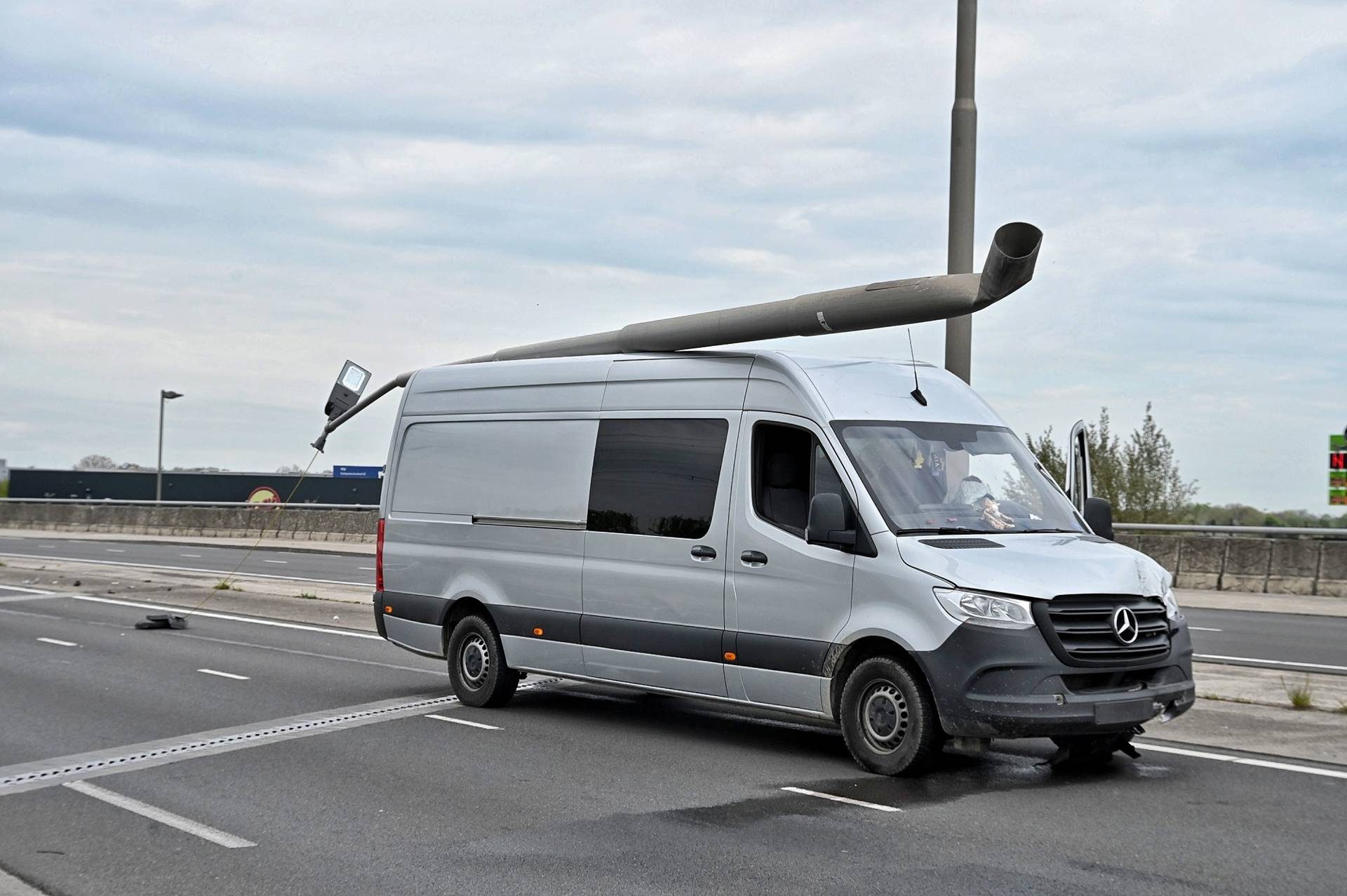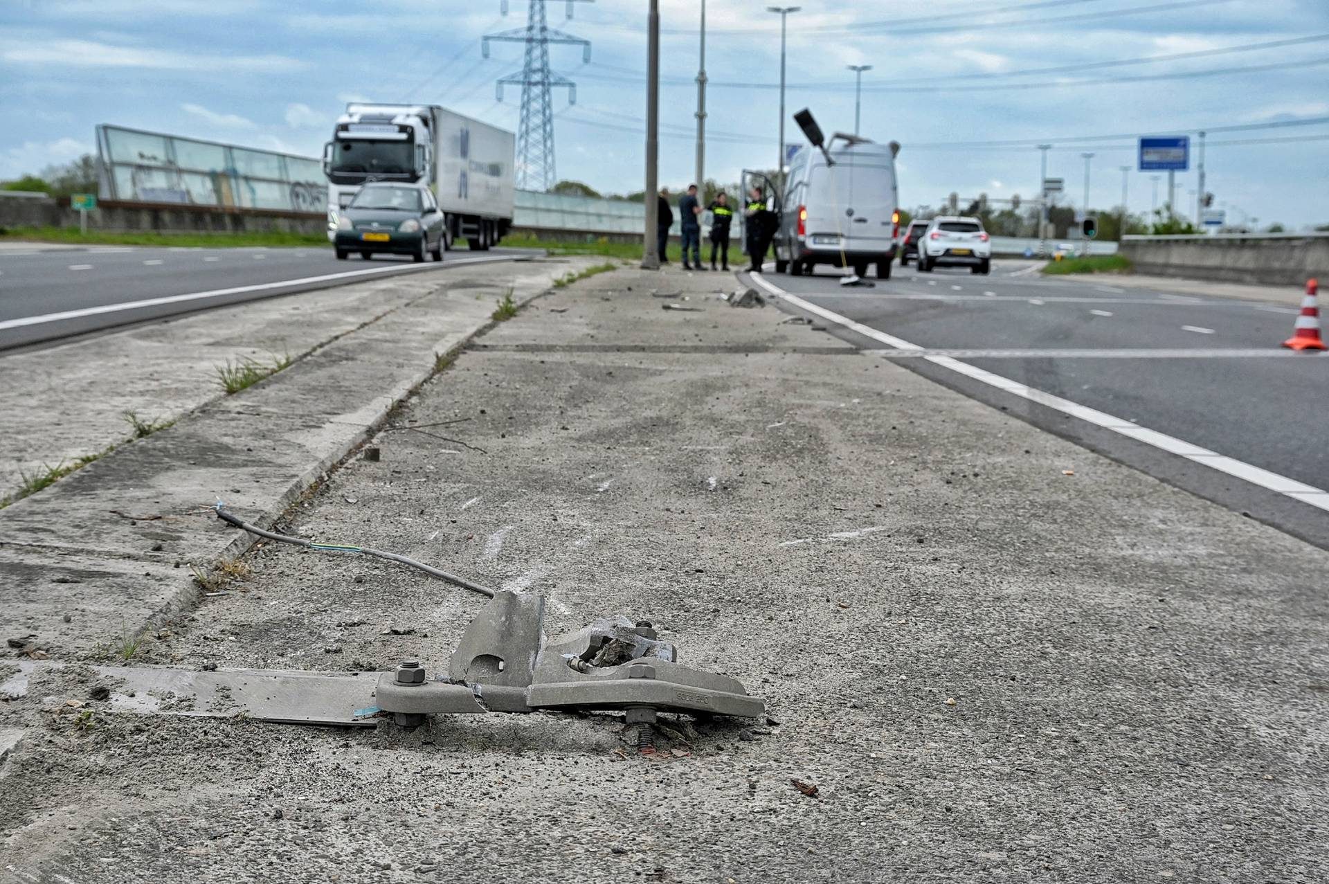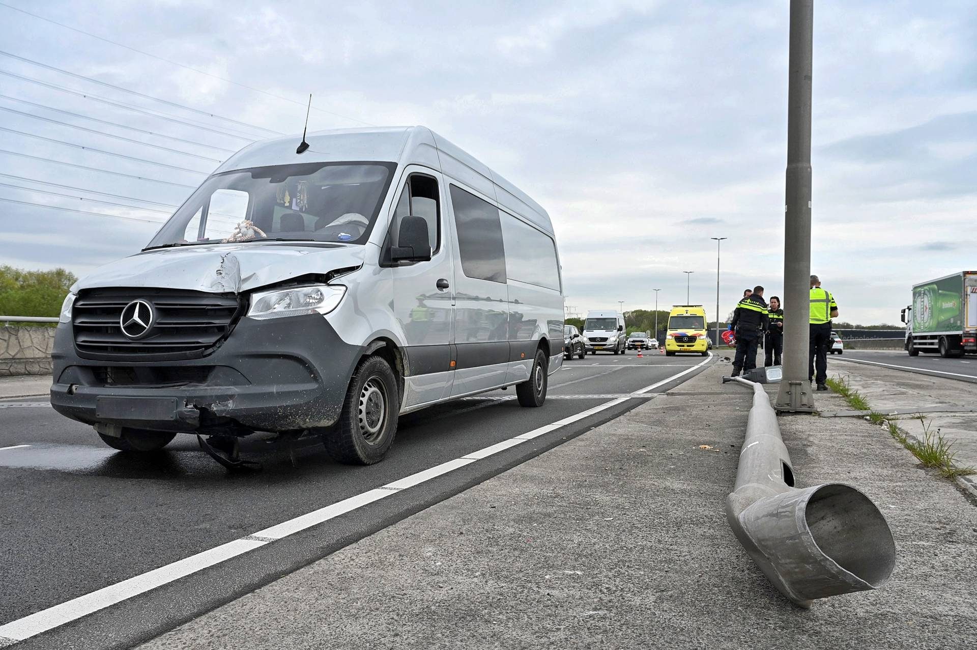 In de bestelbus zaten twee mannen. Na de botsing reed het voertuig nog tientallen meters door, voordat het tot stilstand kwam met de lantaarnpaal nog op het dak. Politie en ambulance kwamen naar de locatie en een rijstrook werd afgesloten voor het verkeer.